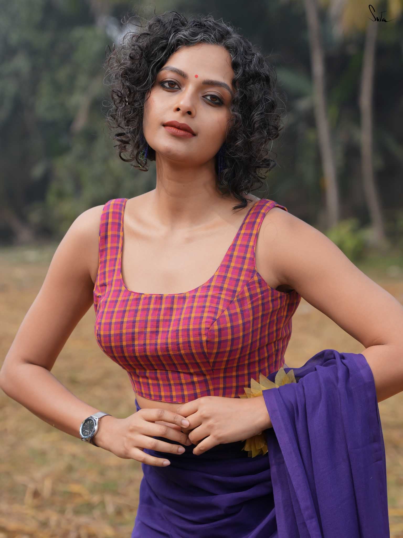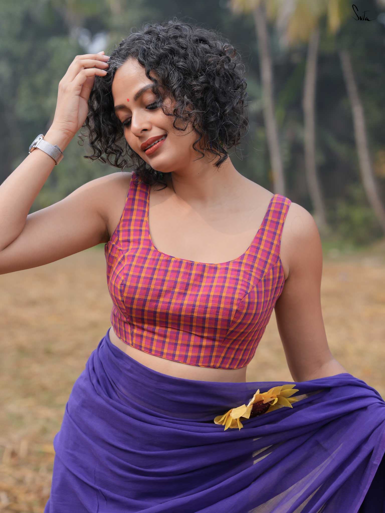 Playful yet polished, this multicolored checkered sleeveless blouse is a cheerful nod to the carefree spirit of Holi. With a chic back knot opening it fits like a glove, giving you comfort and confidence as you dance through the colors of the season. The cotton design ensures a perfect fit that provides comfort without compromising style.