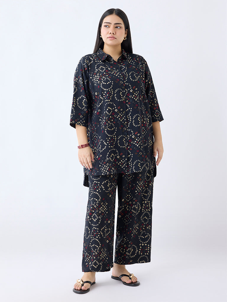 Diza Black Bandhani Print Pants