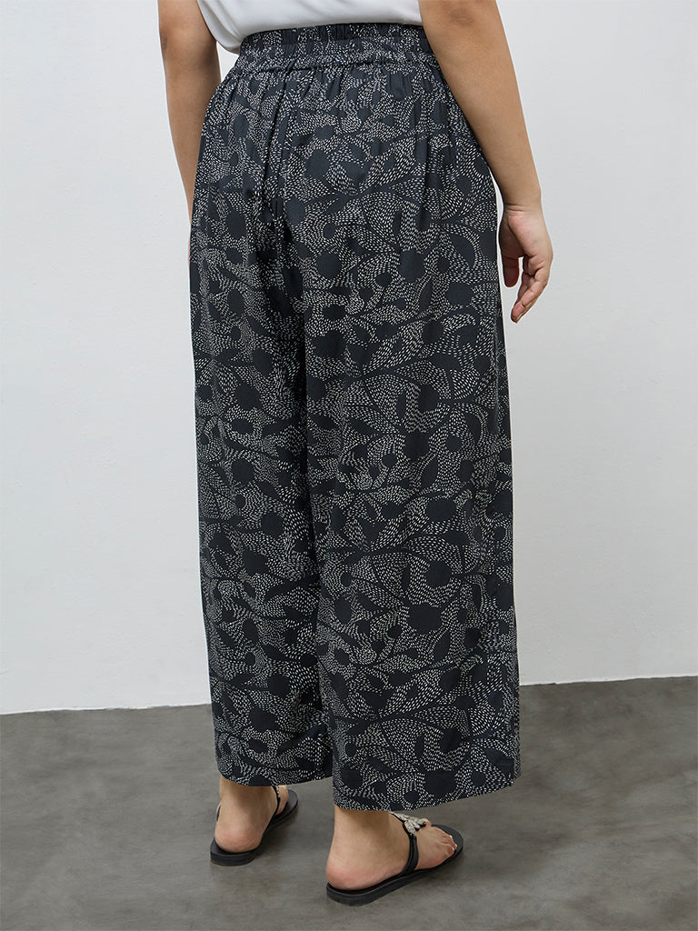 Diza Black Foliage Printed Pants