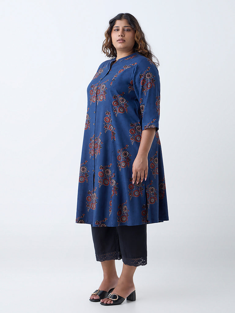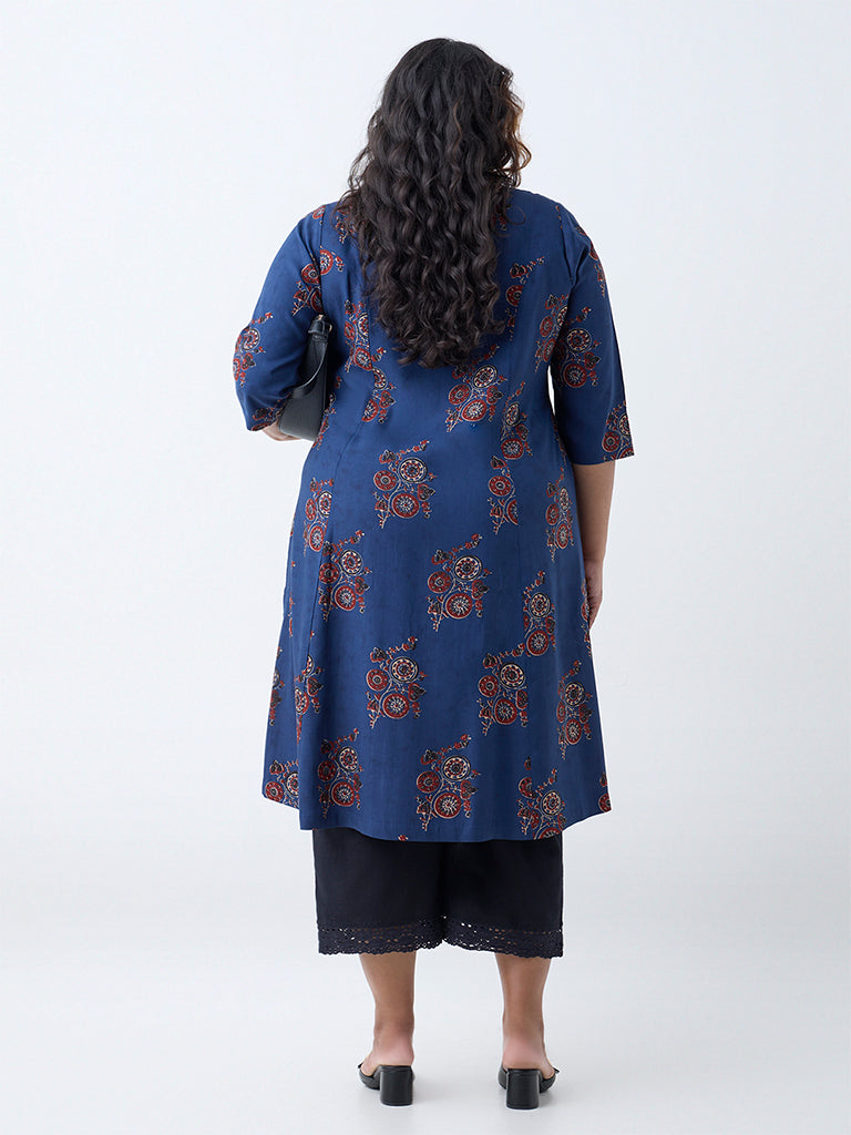Diza Indigo Printed A-Line Kurta