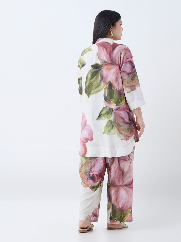 Give a sophisticated update to your festive look with this multicolour tunic from Diza. Spun from quality fabric and detailed with a graceful floral print, it features a classic collar leading to a concealed button placket and is finished with three-quarter sleeves for a polished touch.