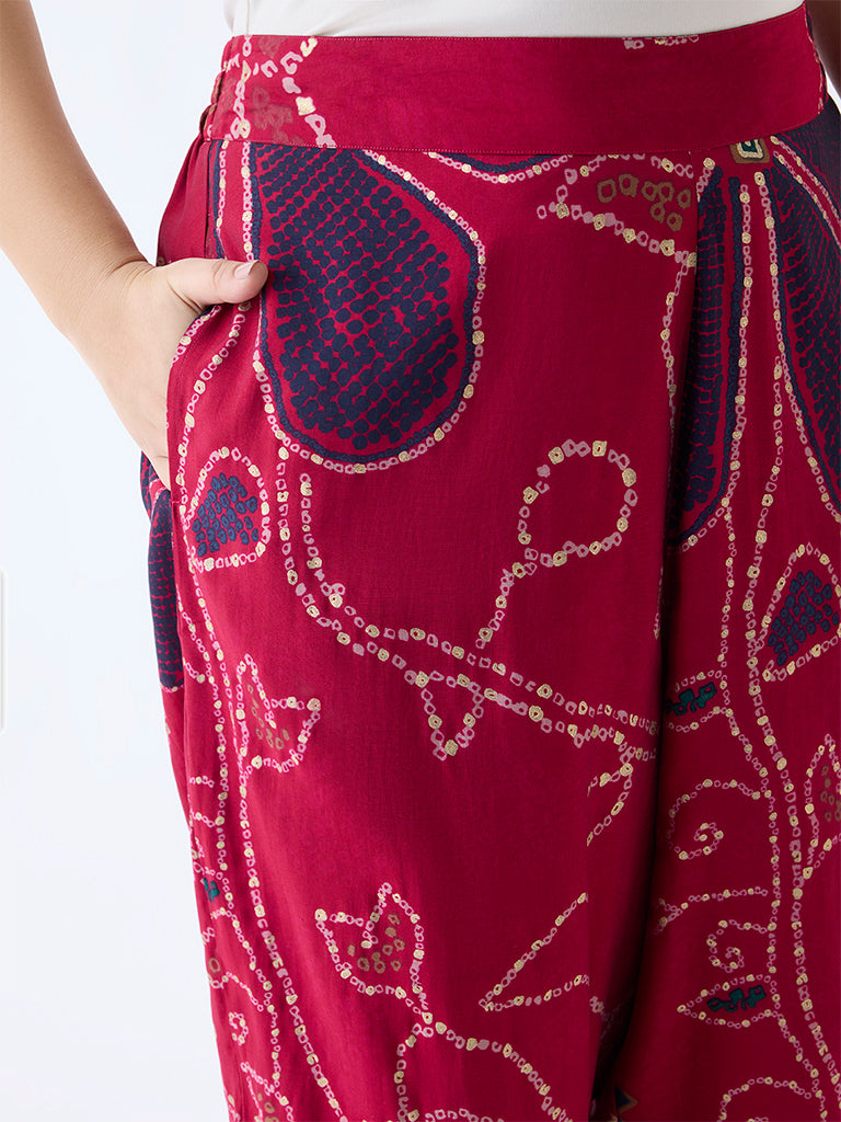 Diza Red Bandhani Print Pants