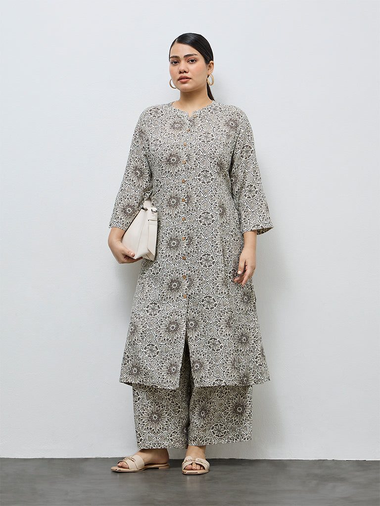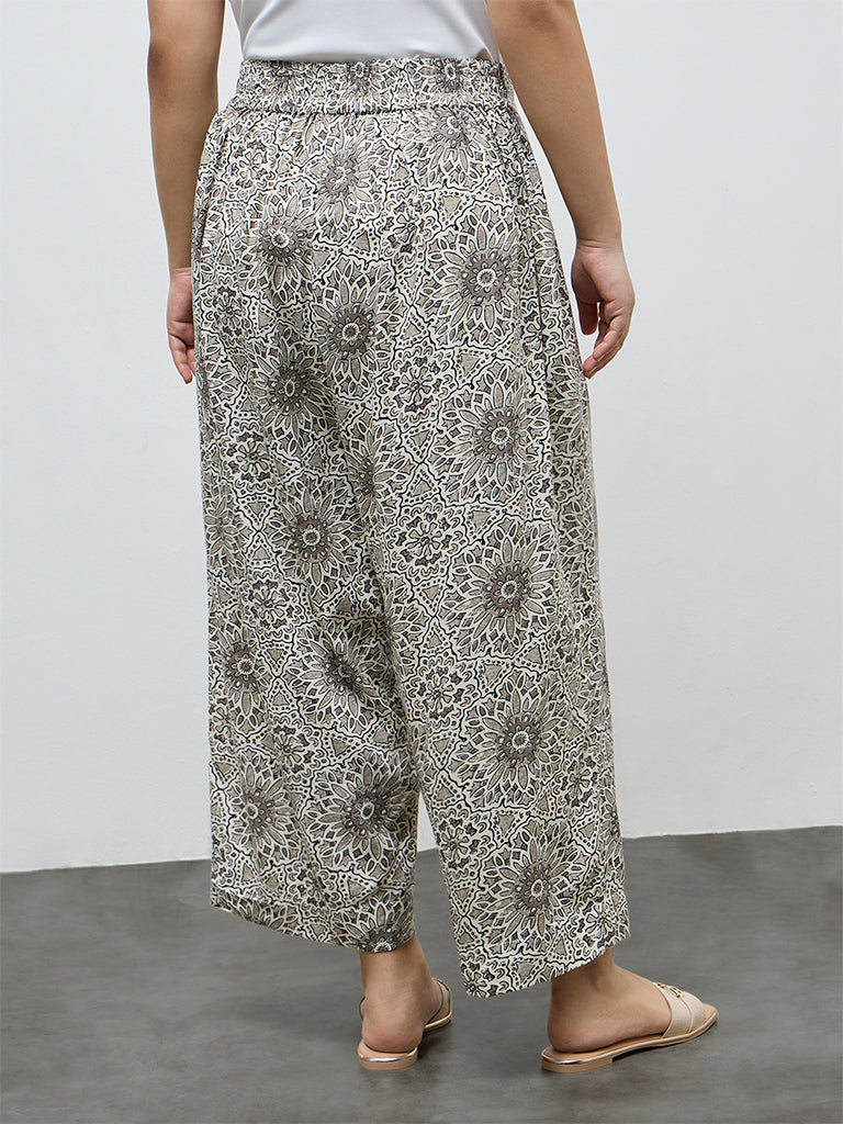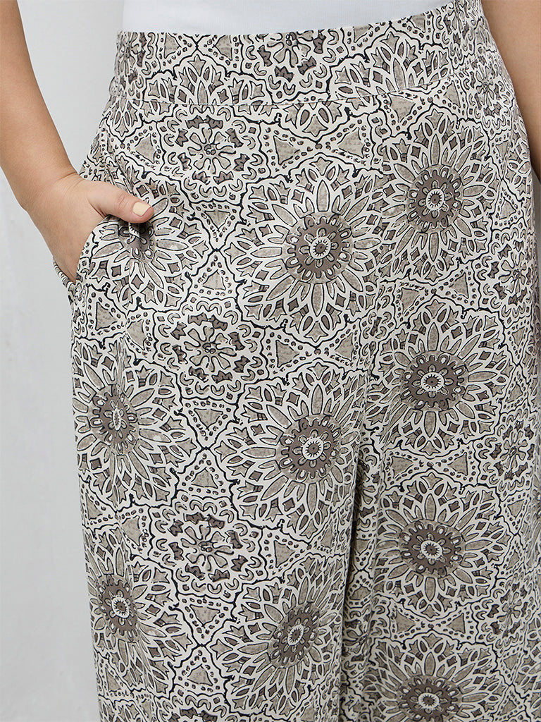 Soften your ethnic wardrobe with these taupe pants from Diza, decorated with graceful floral motifs for a timeless finish. Crafted from a breathable fabric, they come with an elasticated waistband and side pockets, offering comfort-driven design with an elevated, feminine touch.