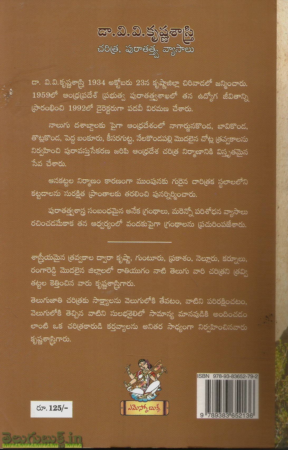Dr.V.V.Krishnasastry Charitra,Puratatva Vyasalu