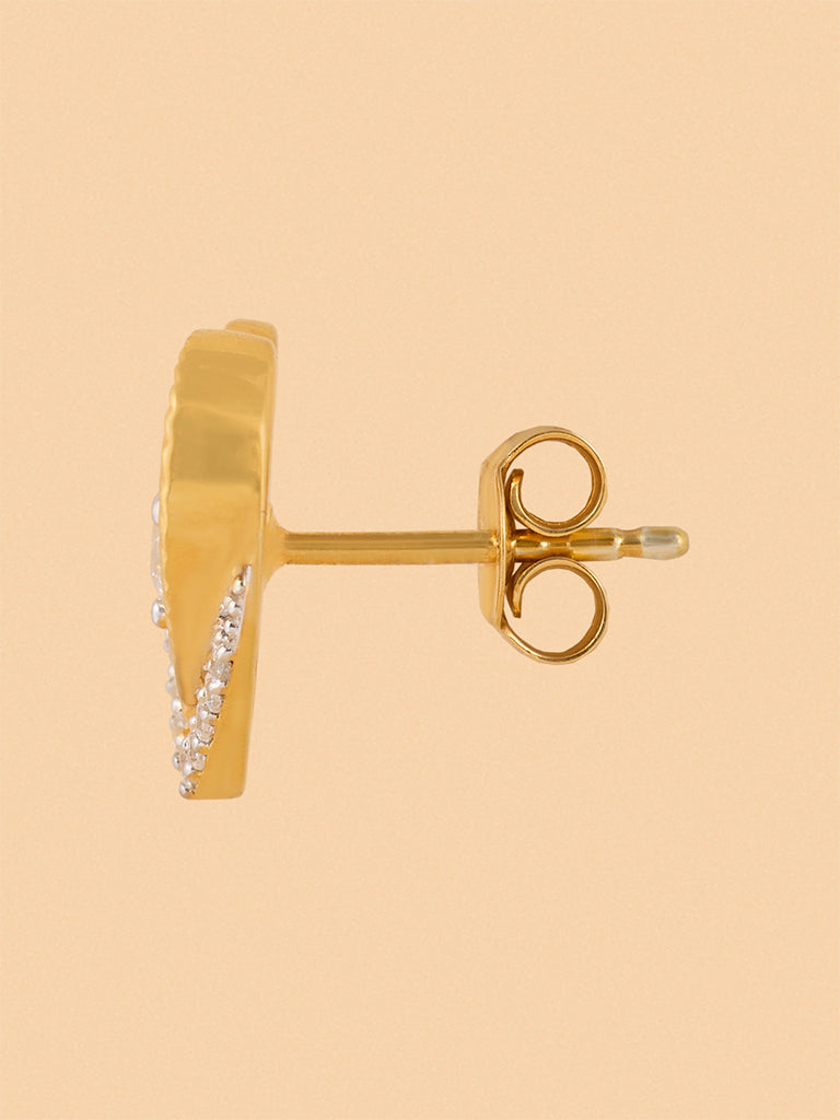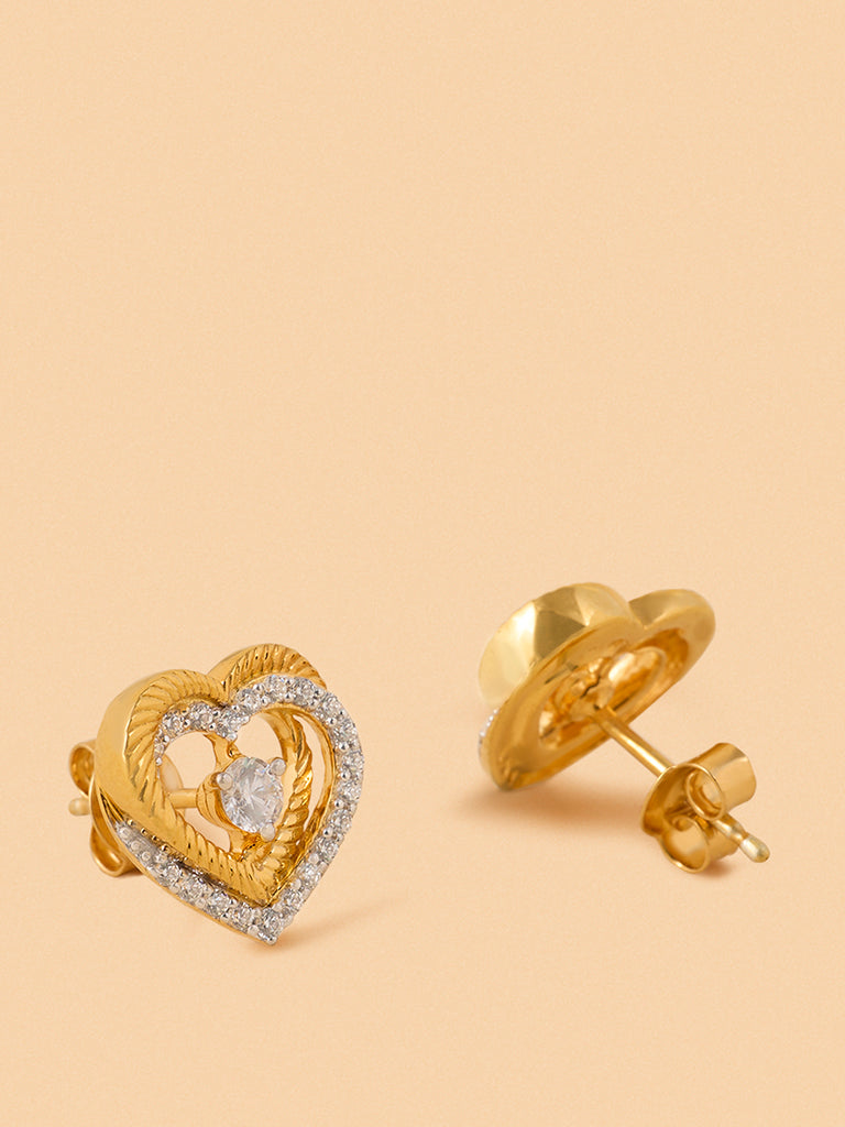 Embrace the essence of love with these Westside X Pome exquisite dual-layered heart studs, crafted from radiant gold vermeil. They feature a delicate pair of heart-shaped frames, intricately designed in gleaming gold and encrusted with lab diamonds. The encased, sparkling central solitaire allows light to dance through, enhancing the brilliance of this stunning piece of jewelry.