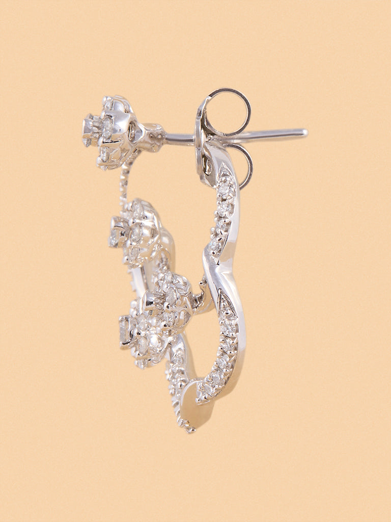 Celebrate yourself with these floral front to back earrings. Made in sterling silver and embellished with lab-grown diamonds, they provide a graceful touch to any ensemble.