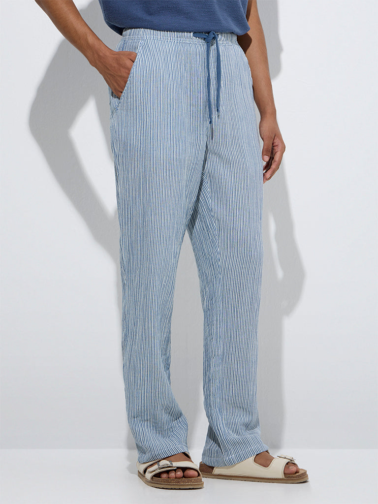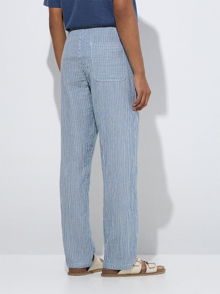 ETA Indigo Striped Relaxed-Fit Mid-Rise Cotton Chinos