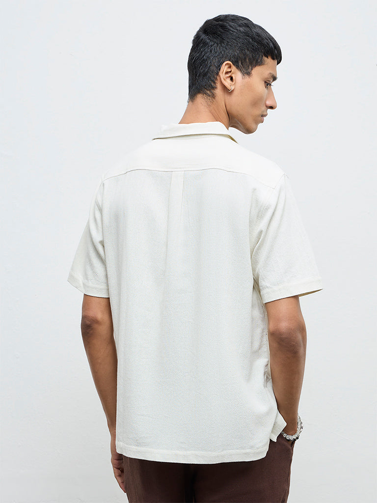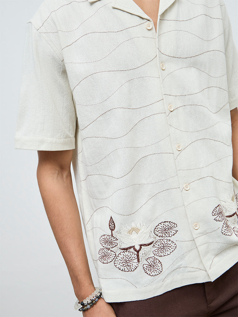 ETA Off-White Floral Embroidered Relaxed-Fit Cotton Shirt