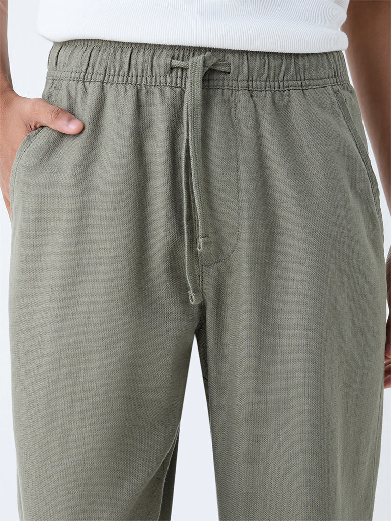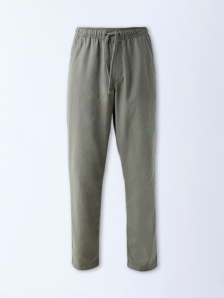 ETA Olive Solid Relaxed-Fit Mid-Rise Cotton Chinos