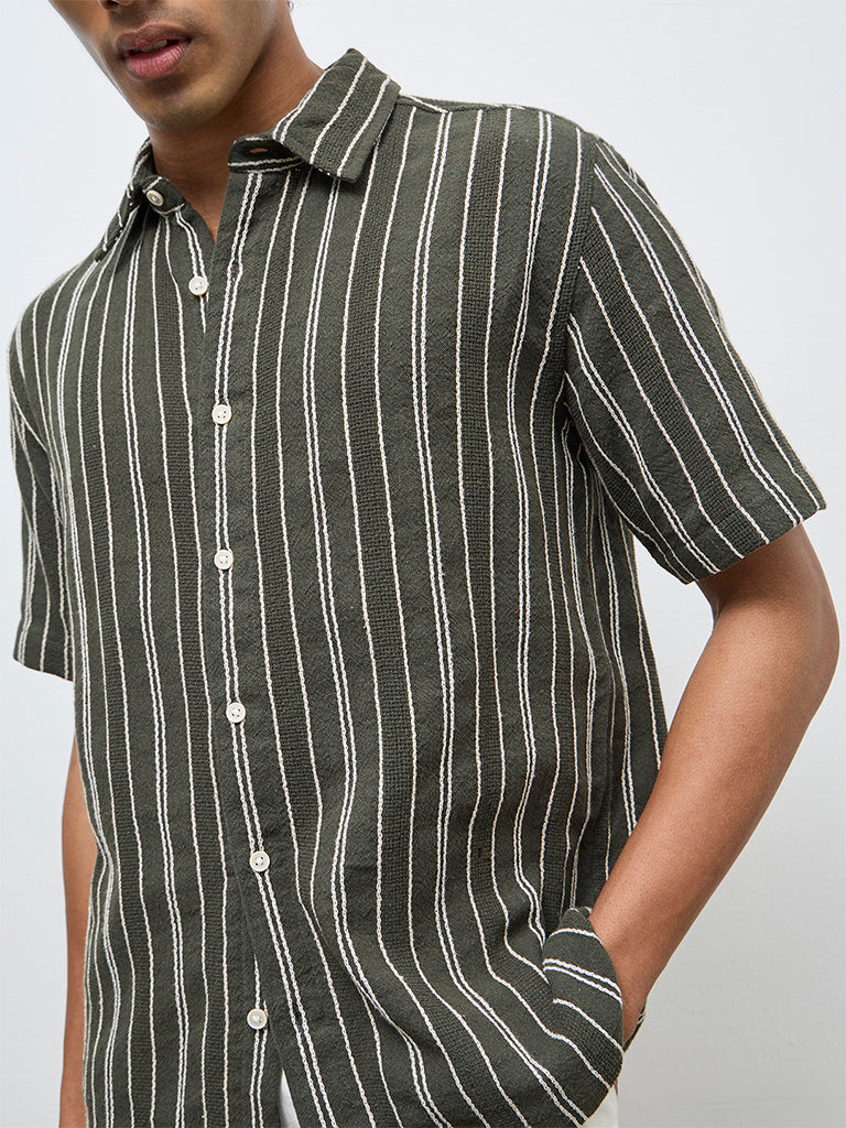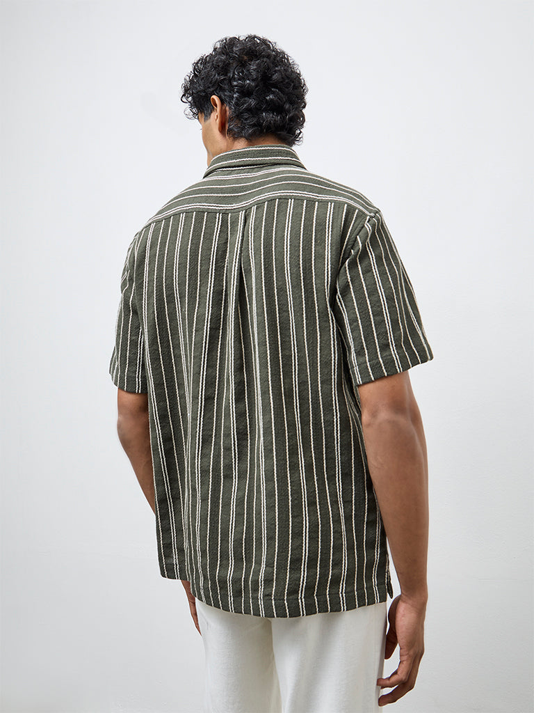 ETA Olive Striped Relaxed-Fit Cotton Shirt