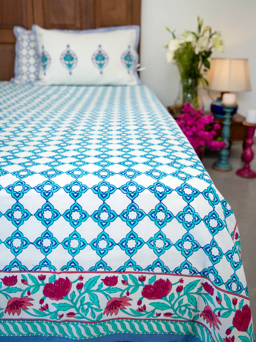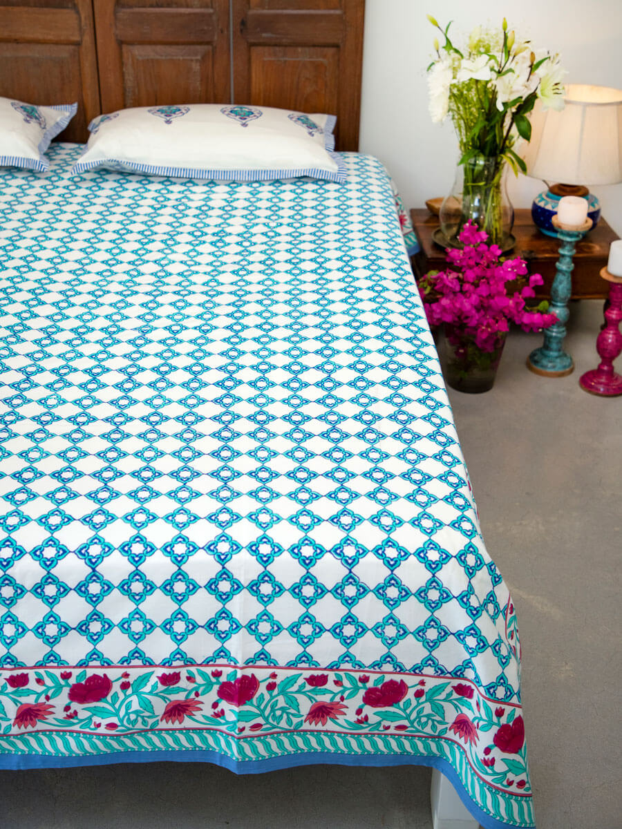 Firoza Block Printed Cotton Bedsheet