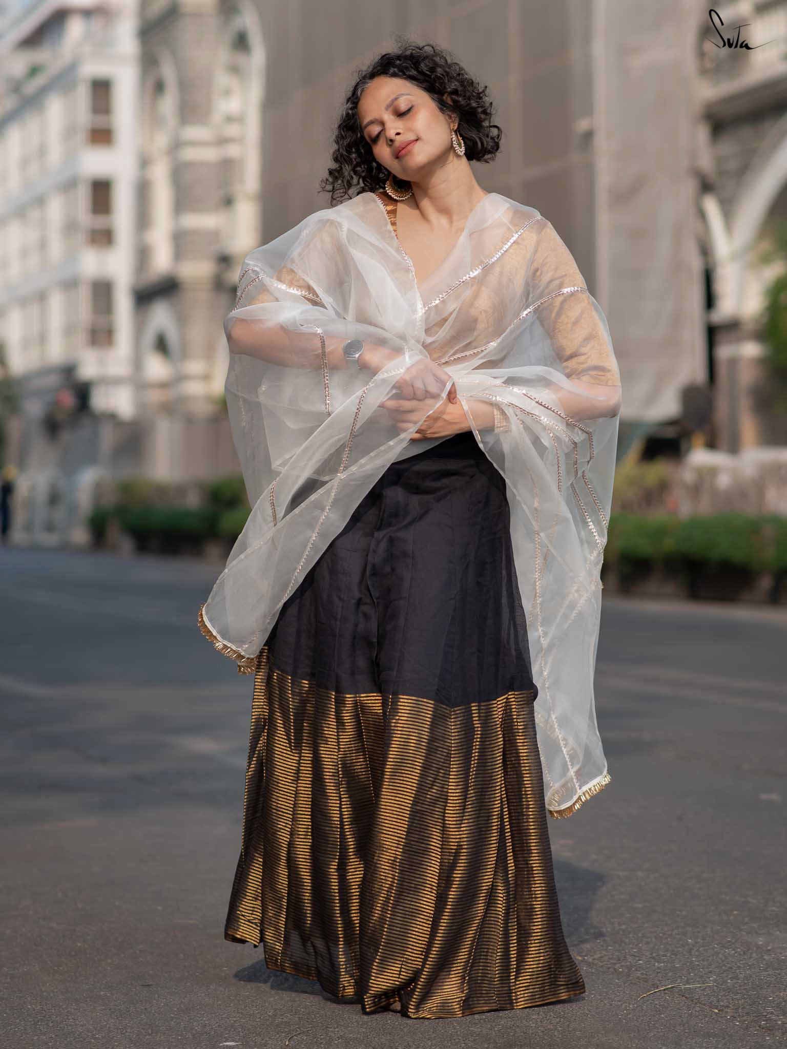 The moon called and asked for its glow back. Fizai Chandni’s off-white organza is pure celestial wonder. Draping it is like wearing a halo of moonlight unapologetically radiant and a total showstopper.