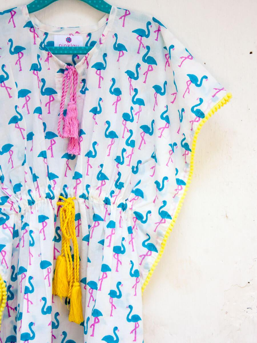Flamingo Organic Cotton Block Printed Kaftan for Kids