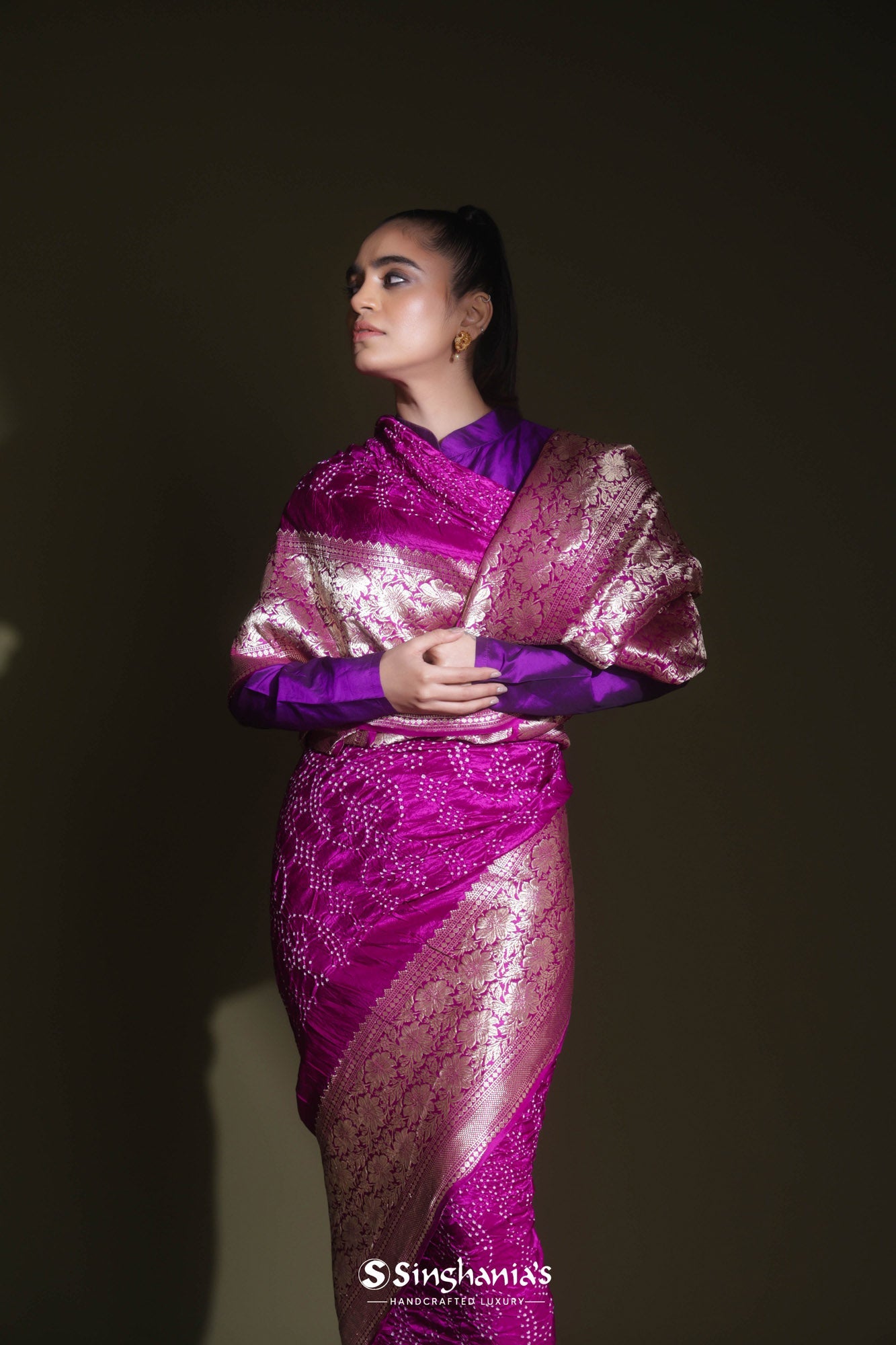 Fuchsia Purple Bandhani Kanjivaram Saree