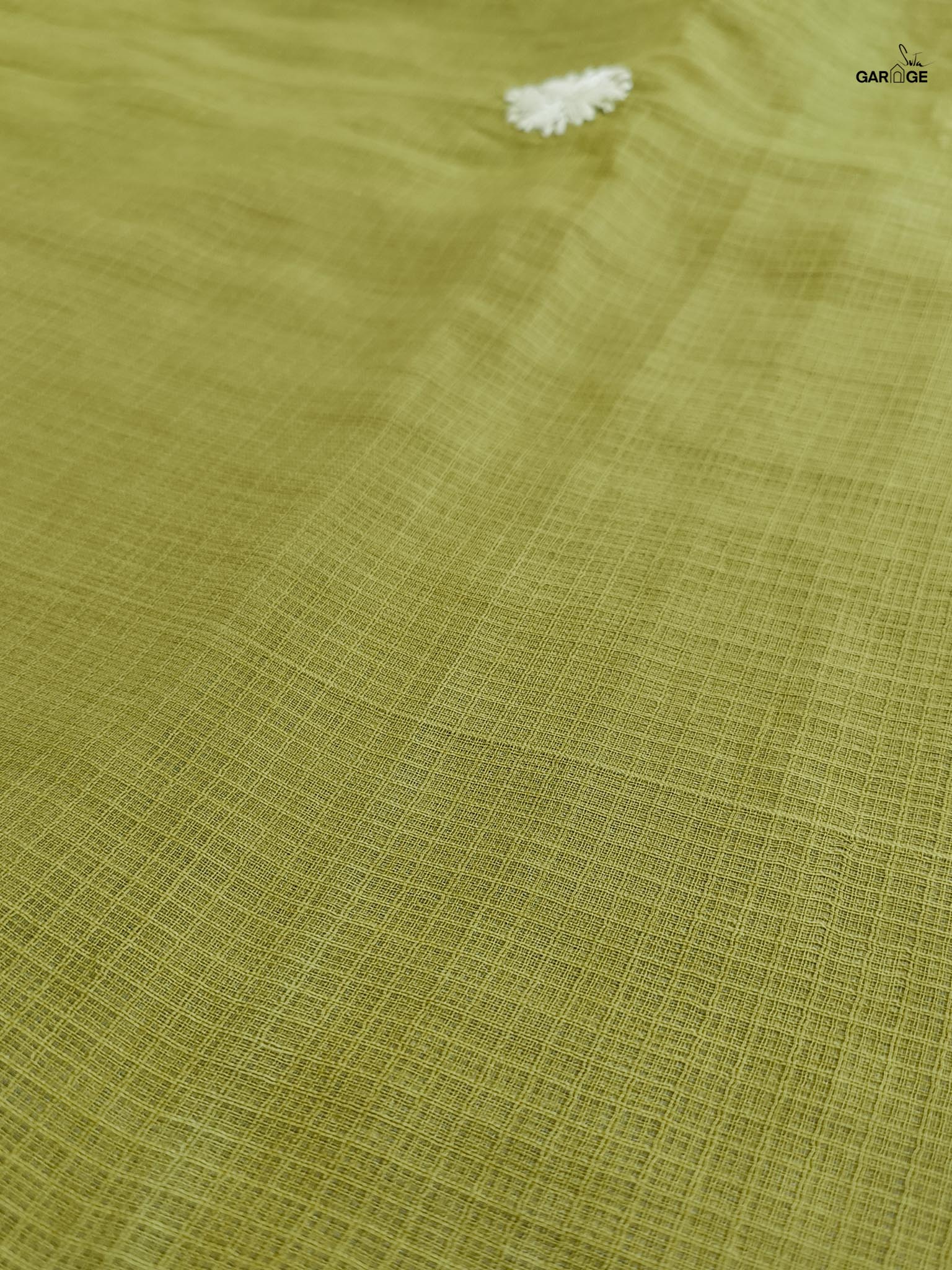 Kota cotton fabric is renowned for its softness, light weight and ease of wear. It is made using an open weave with fine checks, which are called ˜khats. This weave ensures that the resultant fabric is airy and comfortable. This Kota cotton fabric forms the base of these sarees, which are further embellished with Lucknowi chikankari work. Chikankari is a style of embroidery that has its roots in Lucknow, the capital of Uttar Pradesh. The word 'chikan' is derived from the Persian word 'chikeen'. In its most traditional form, chikankari work reflects the influence of the intricate carving patterns found in Mughal architecture. The legacy of chikan work in Lucknow dates back to more than 200 years.