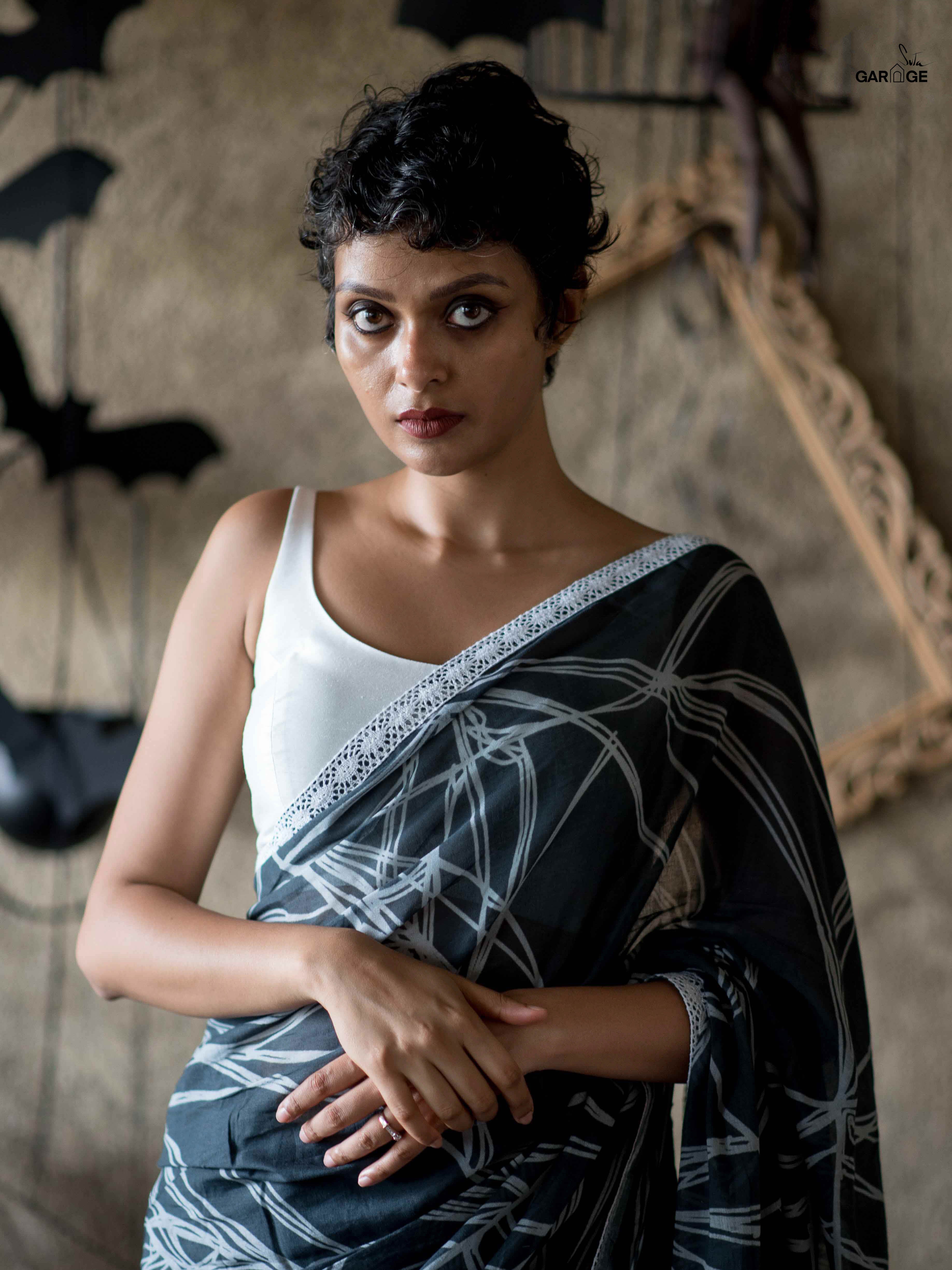 Su, the model is wearing size S blouse and the sarees are CobwebReindeer
