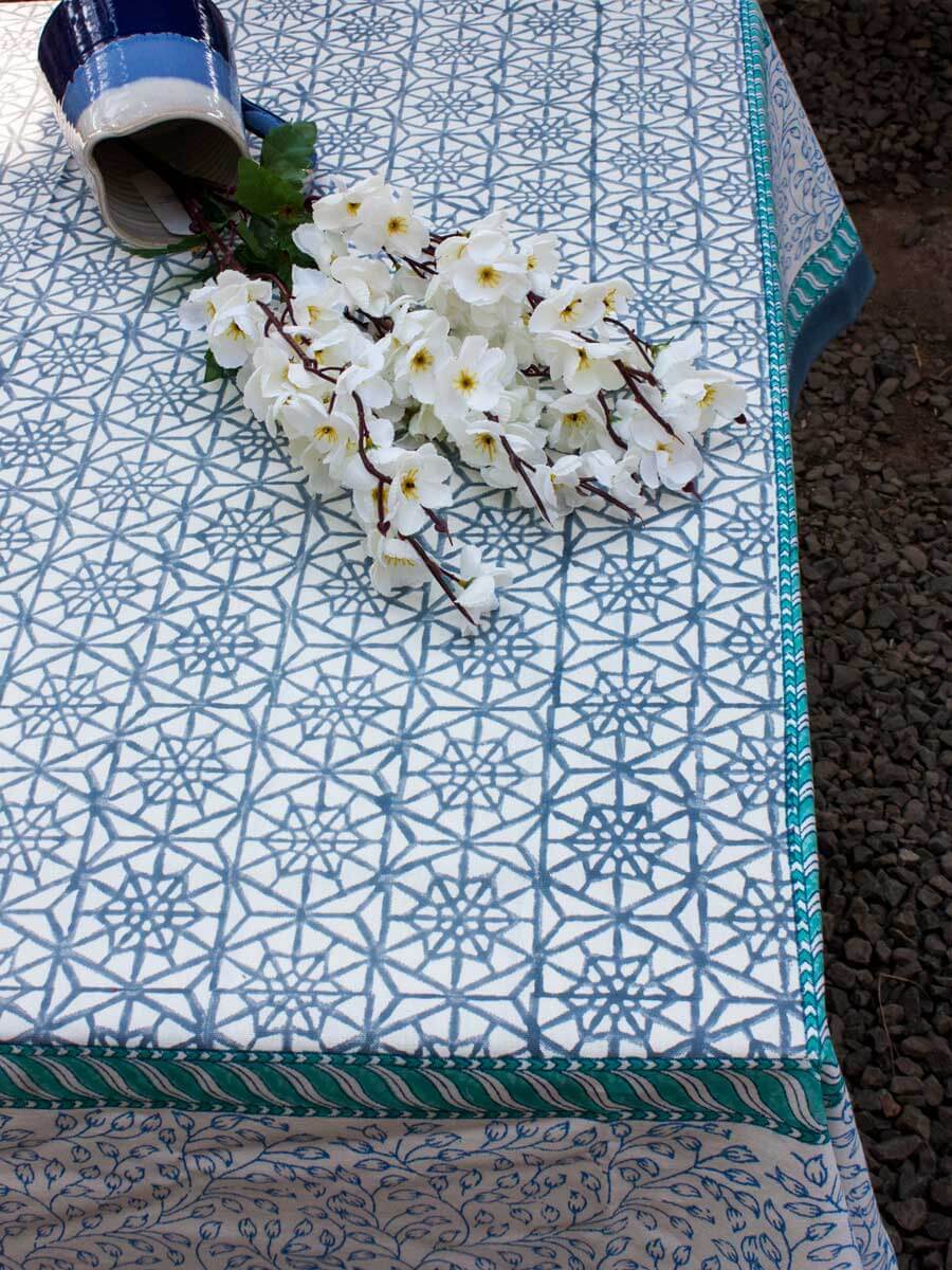 Crafted in 100% cotton, the fabric used is firm, so it sits well on the table. A contemporary print in traditional hand block technique makes this piece in style of today yet reminiscent of yesterday. Available in two sizes - for 4-seater and 6-8 seater tables.