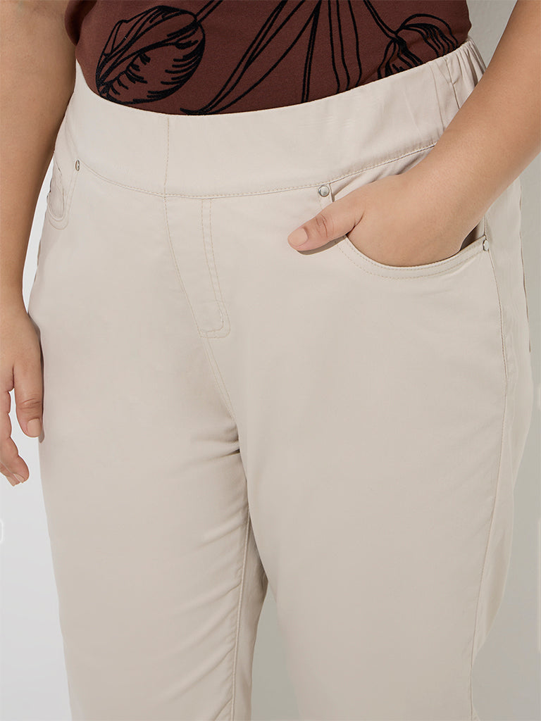 These beige solid jeggings from Gia are designed for all-day ease. Constructed from a cotton-rich fabric, they offer a snug yet comfortable fit that moves with you. The smooth elasticated waistband ensures a secure feel, while multiple pockets add a practical touch.