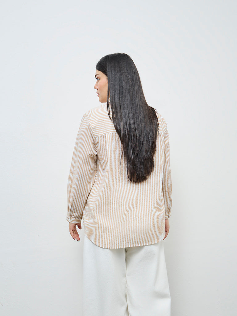 Gia Beige Striped Cotton Shirt