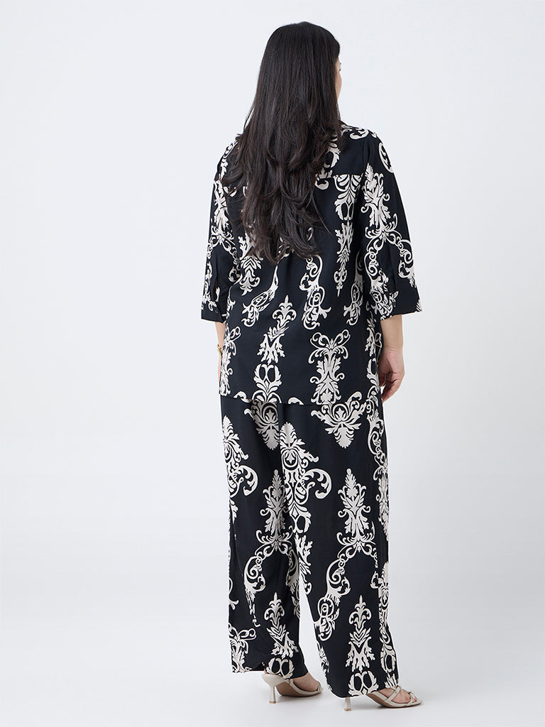 This black shirt by Gia is defined by an all-over print that lends the classic silhouette a contemporary edge. Made from a breathable fabric, it features a collared neckline, a button-front placket and three-quarter sleeves that come together to create a polished, easy-to-style essential for everyday wear.