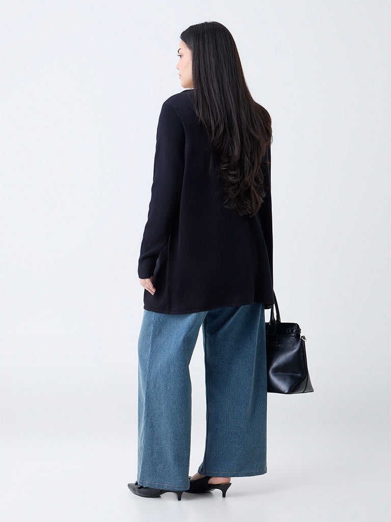 Layer up in style with this black solid shrug from Gia. Designed with an open-front collar and refined ribbed detailing, it features full sleeves for a sleek and versatile look. Crafted from quality fabric, it pairs effortlessly with a variety of outfits for a chic finish.