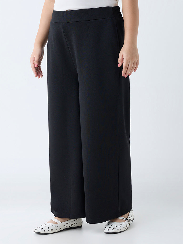 Gia Black Solid Wide-Leg High-Rise Trousers