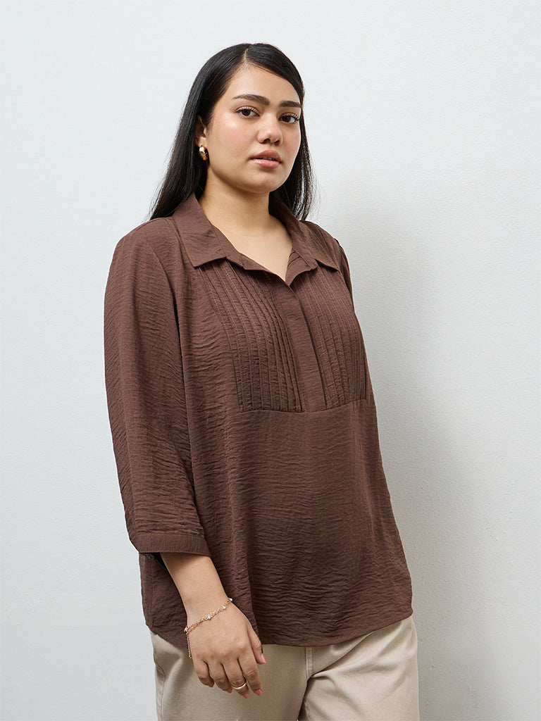 Gia Dark Brown Pintuck-Detail Blouse