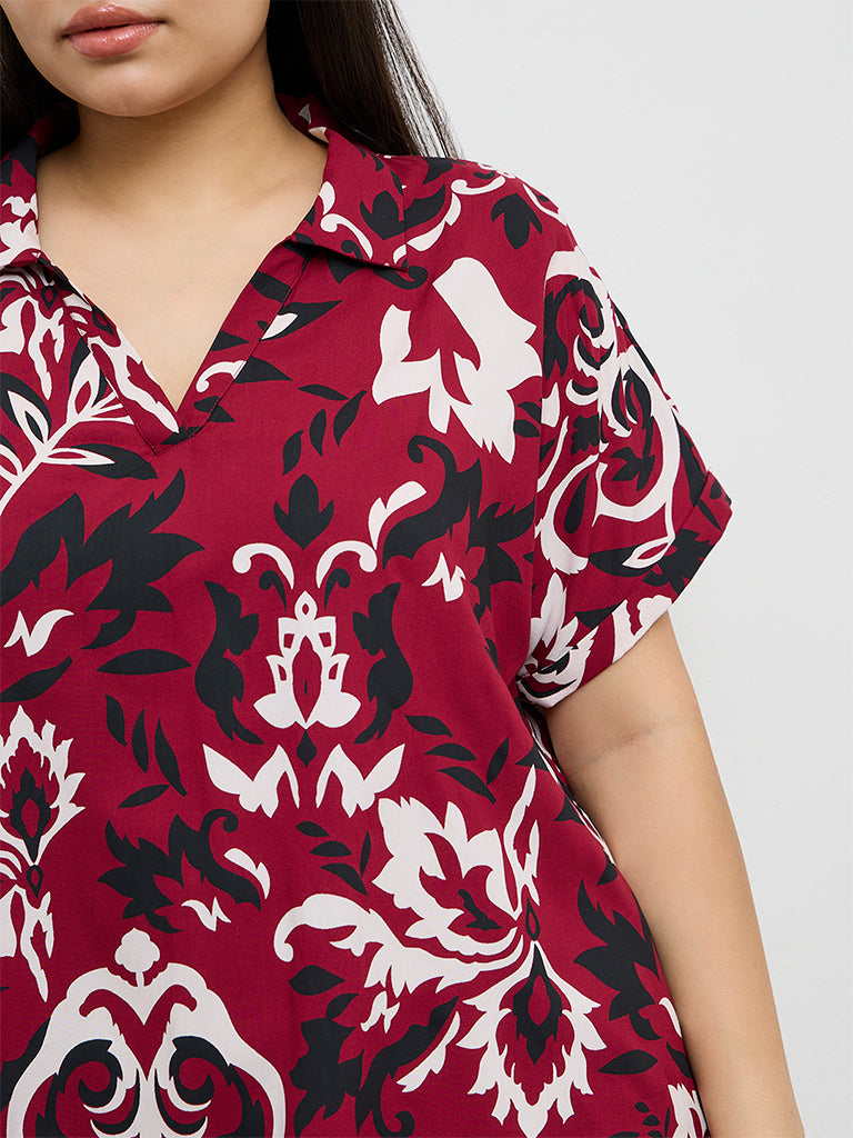 Gia presents this red blouse featuring floral prints adding a subtle grace to summer fashion. A V-neckline and short sleeves create a casual look, while adding a touch of everyday charm. Elevate your fashion basics with this trendy blouse, crafted from a premium fabric that ensures a relaxed and a comfortable wear, making it a perfect pick for effortless daily styling.