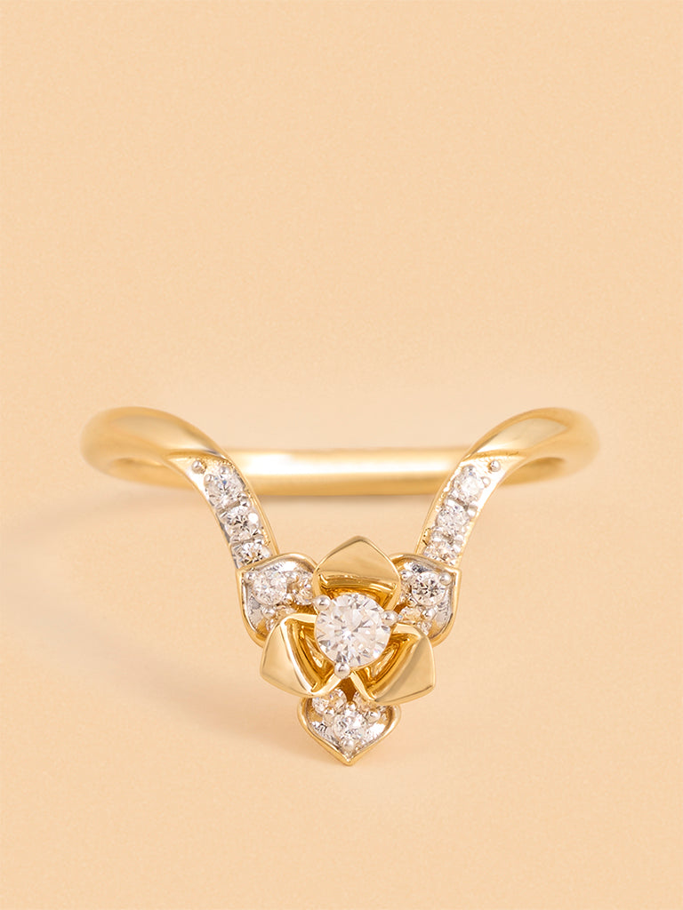 Gold Multilayer Rose V Ring