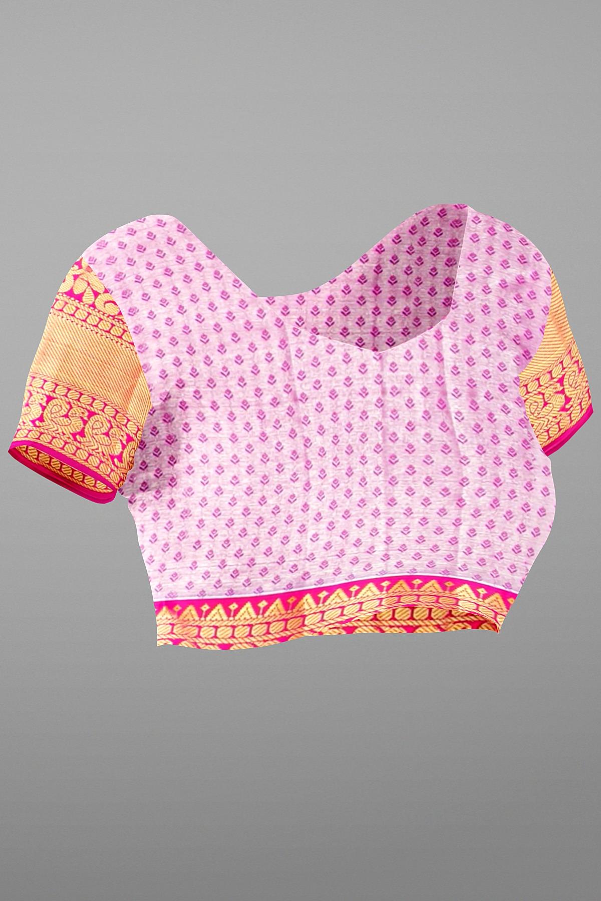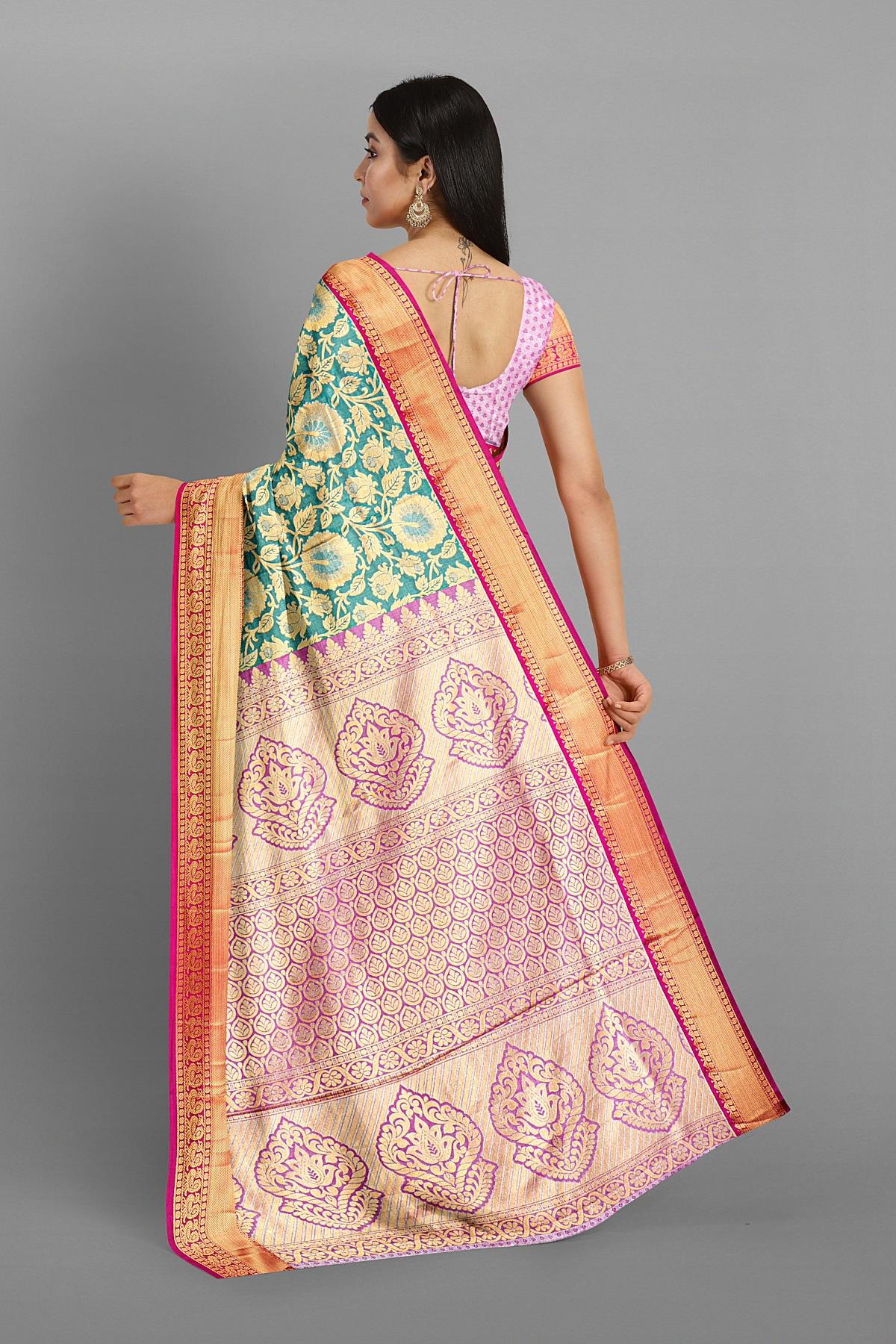 GREEN and PINK FLORAL JAAL SILK BLEND Saree with SEMI PATTU