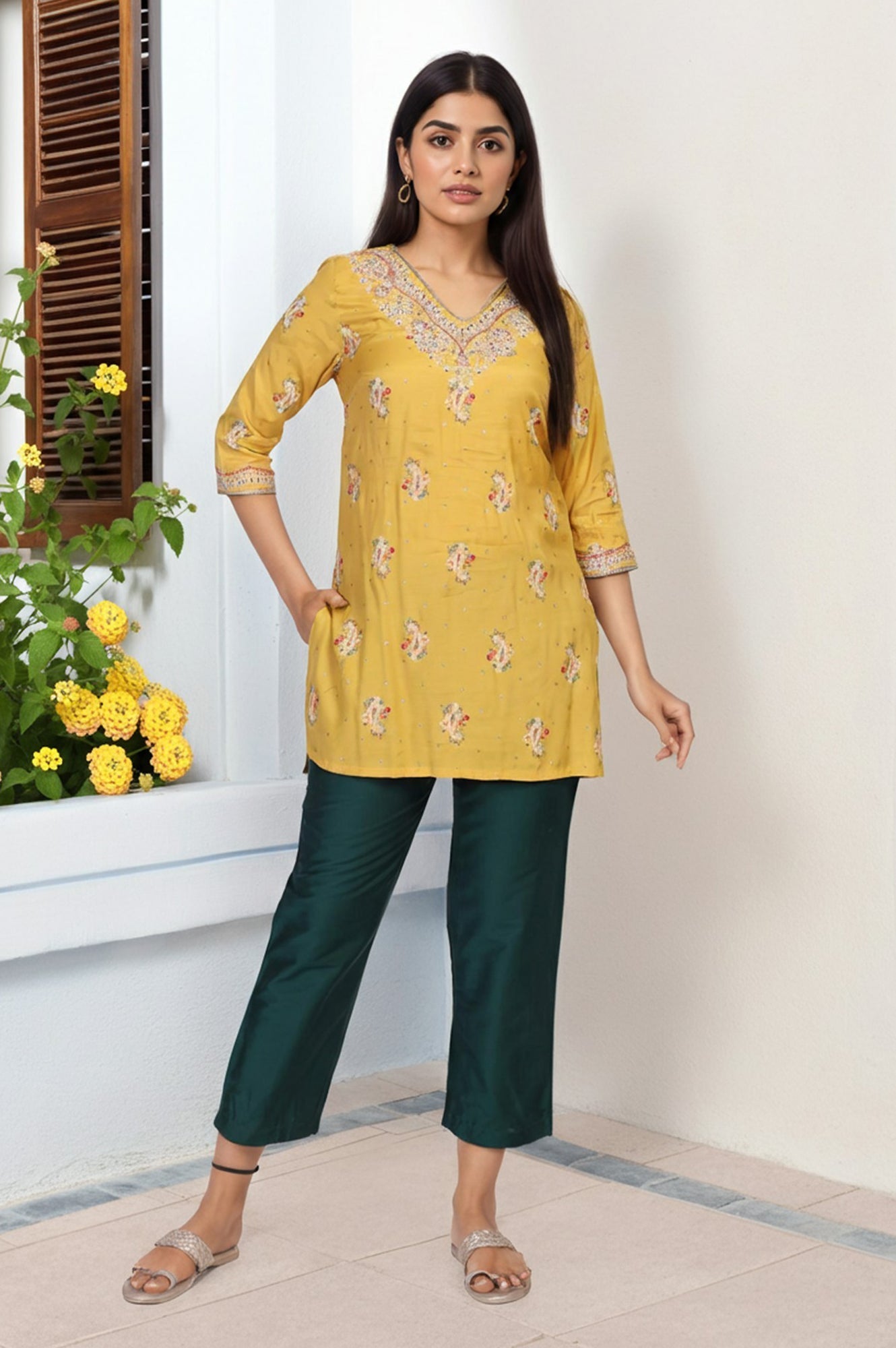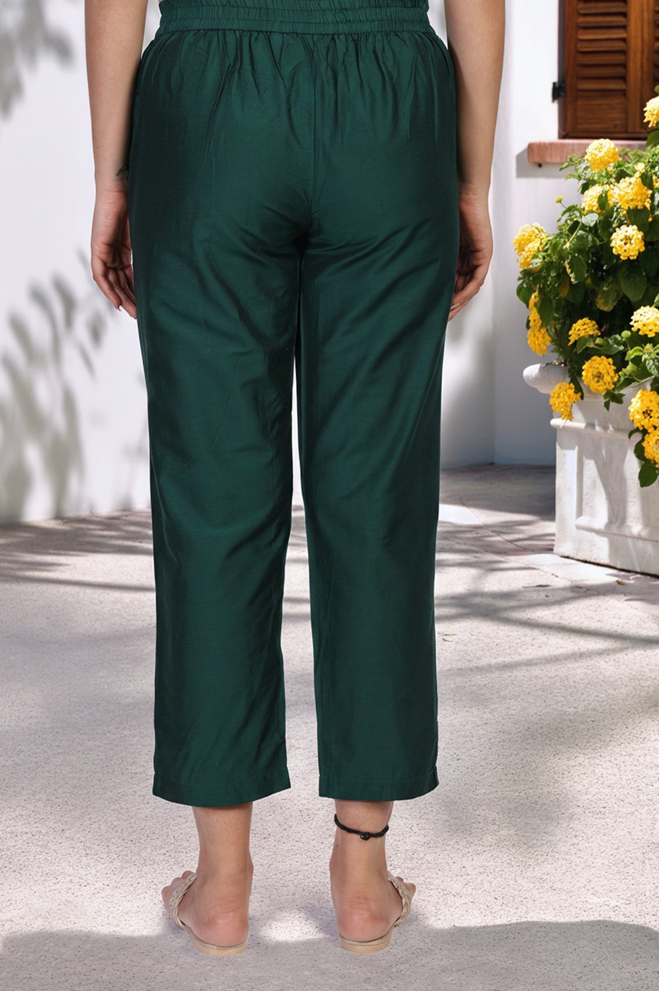 The fit that moves the way you do—these straight-leg trousers in a captivating Deep Forest Green are a masterclass in versatile design. As essential ladies' trousers for modern wardrobes, they bridge the gap between relaxed comfort and polished style. The silhouette is impeccably straight, creating a clean line from hip to hem that finishes at a contemporary ankle length. Experience true ease with the convenient pull-on design, featuring a fully elasticated waistband that sits comfortably at a mid-rise. This thoughtful construction eliminates fussy closures while maintaining a smooth, flattering front. Practicality is woven into the design with two functional slant pockets that blend seamlessly into the side seams, offering space for your essentials without disrupting the sleek profile. The front style is beautifully flat, allowing the rich, solid color and fluid drape of the fabric to take center stage. Crafted from a material chosen for its soft touch and graceful movement, these pants feel as good as they look. Whether you're creating an elegant ensemble with a silk top or seeking the perfect women's pants to pair with your favorite kurta, this pair promises endless styling possibilities and uncompromising comfort from morning to night. The stitched hem ensures a durable and refined finish to this wardrobe staple.