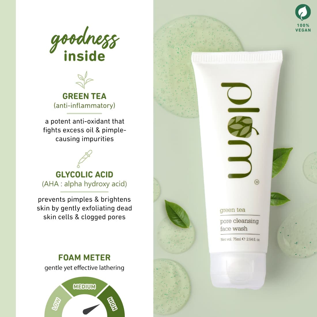 features of green tea pore cleansing face wash: