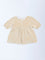 HOP Baby Beige Schiffli Detailed Cotton-Blend A-Line Dress
