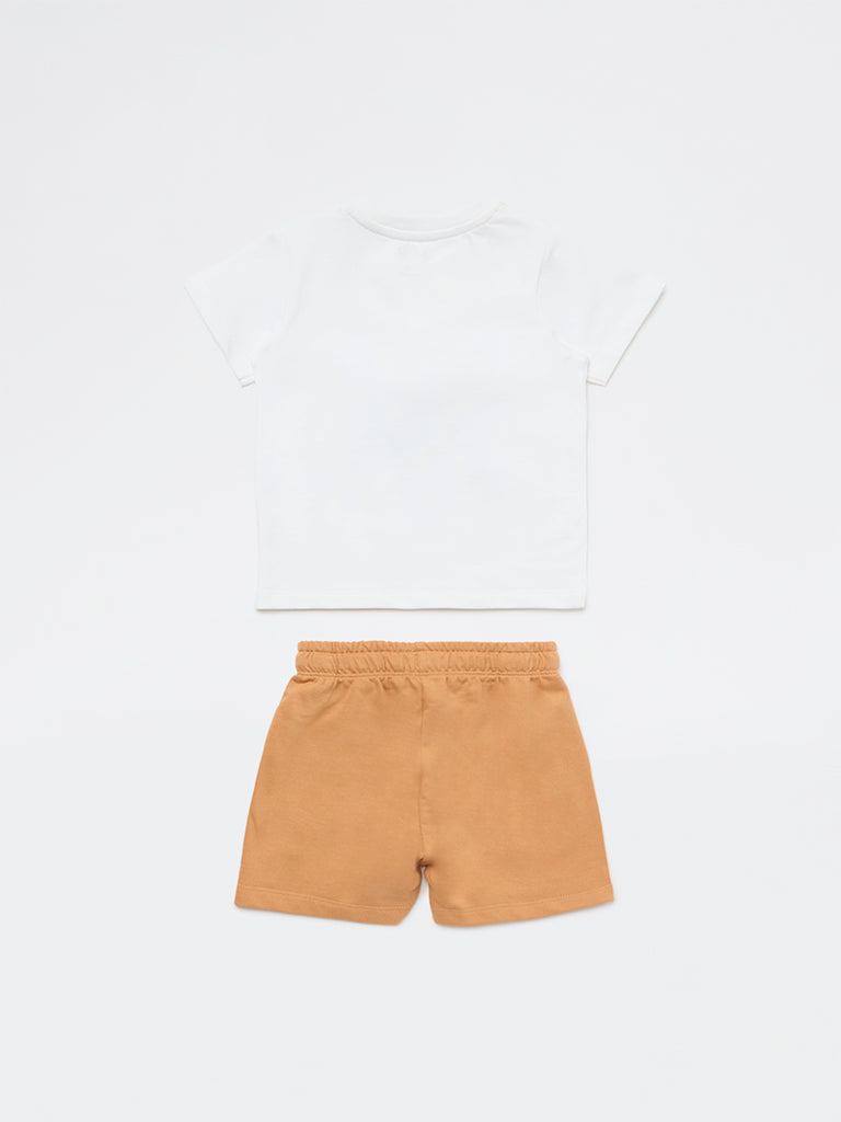 HOP Baby Boys White Printed Cotton T-Shirt and Shorts Set