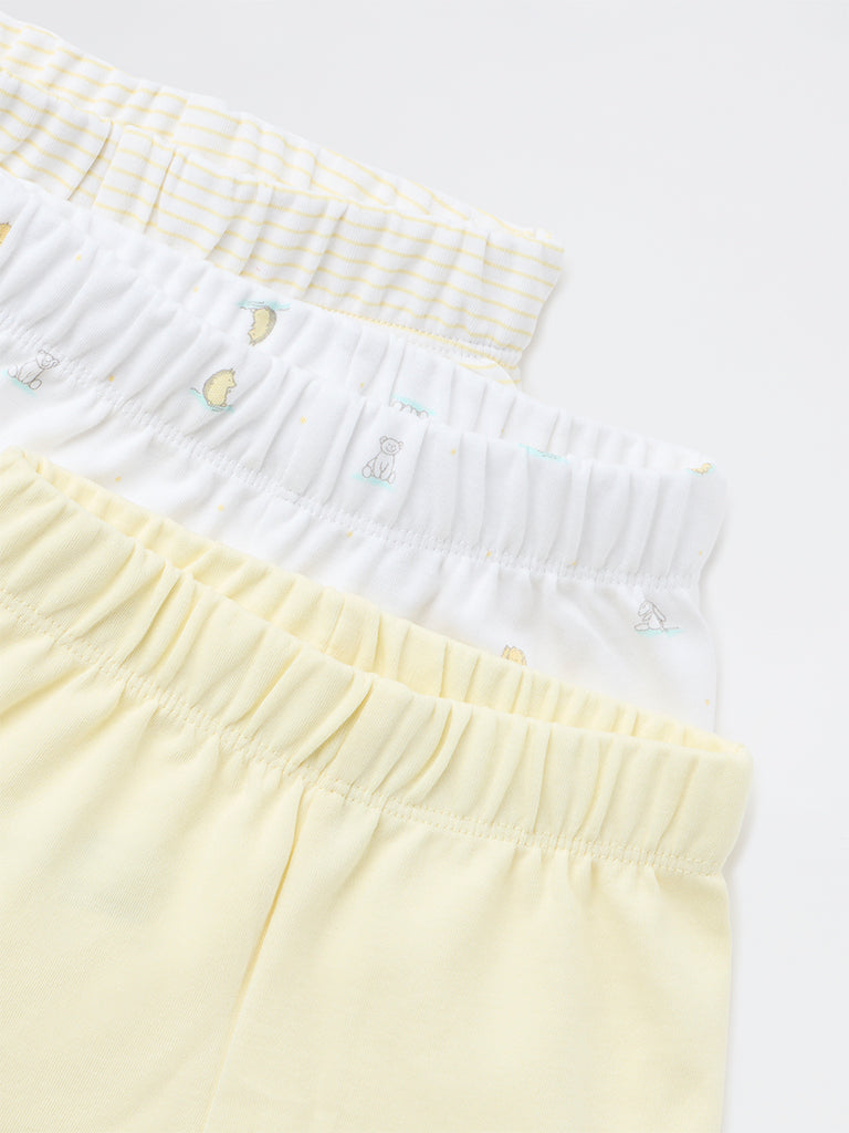 HOP Baby Boys Yellow Printed Cotton Shorts - Pack of 3
