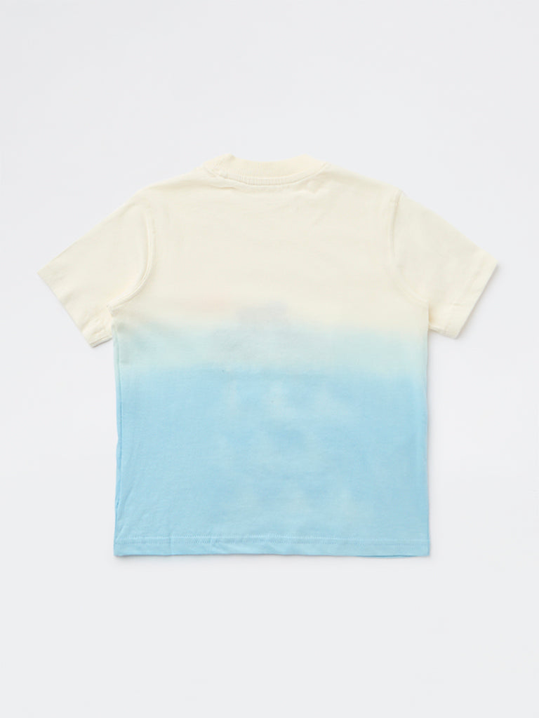 Bring a splash of summer fun to everyday outfits with this blue t-shirt from HOP Kids. The playful graphic sits against a soft ombre backdrop that creates a breezy, tropical mood. Crafted from pure cotton, it features a crew neckline and short sleeves for easy comfort through playtime and outings.