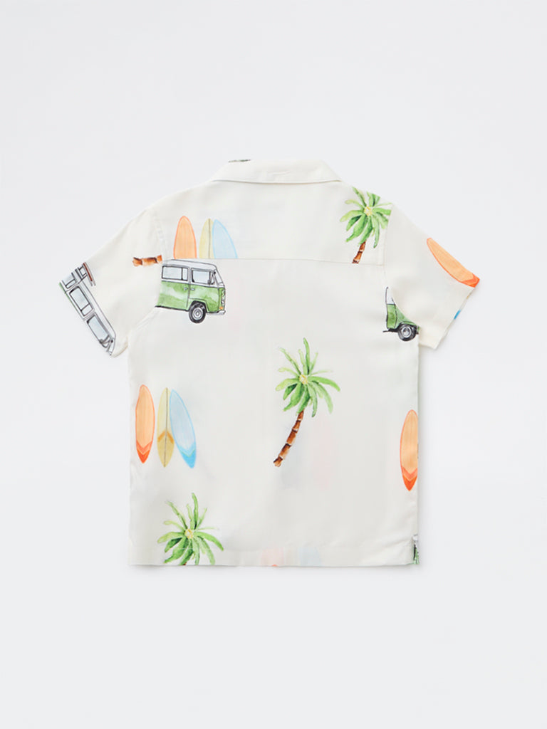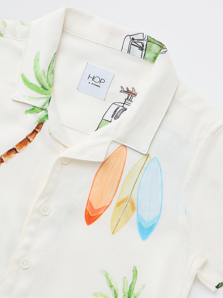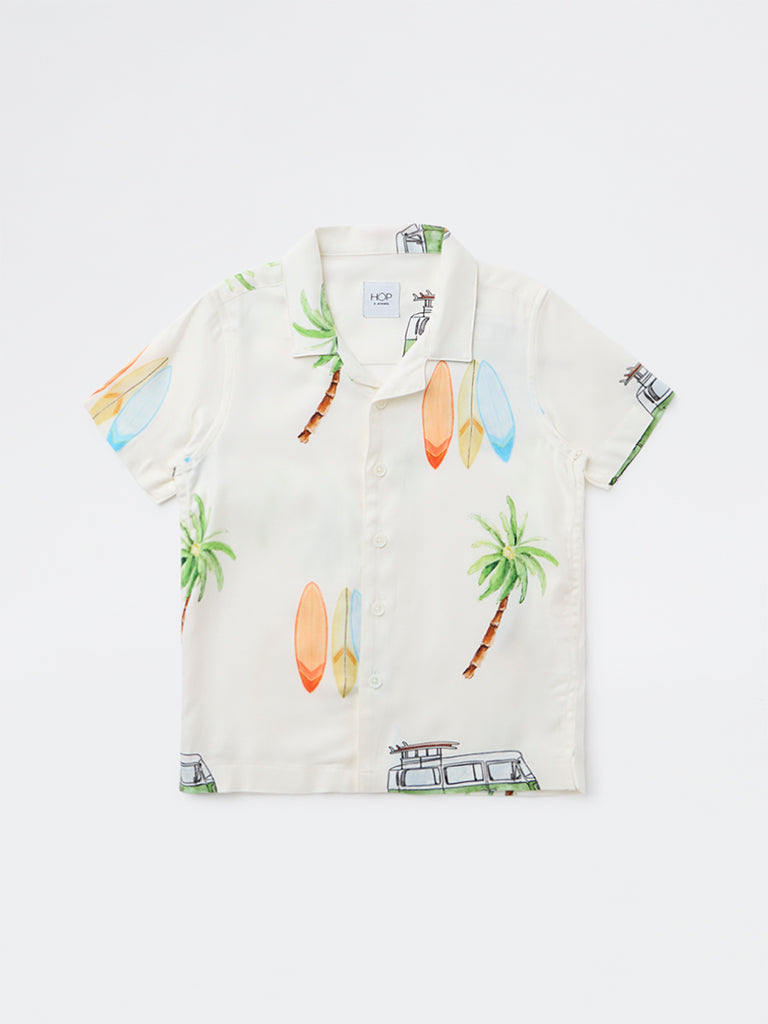 HOP Kids Boys Off White Tropical Printed Shirt