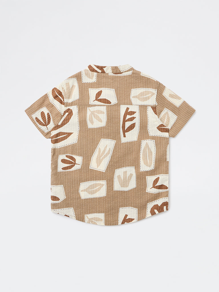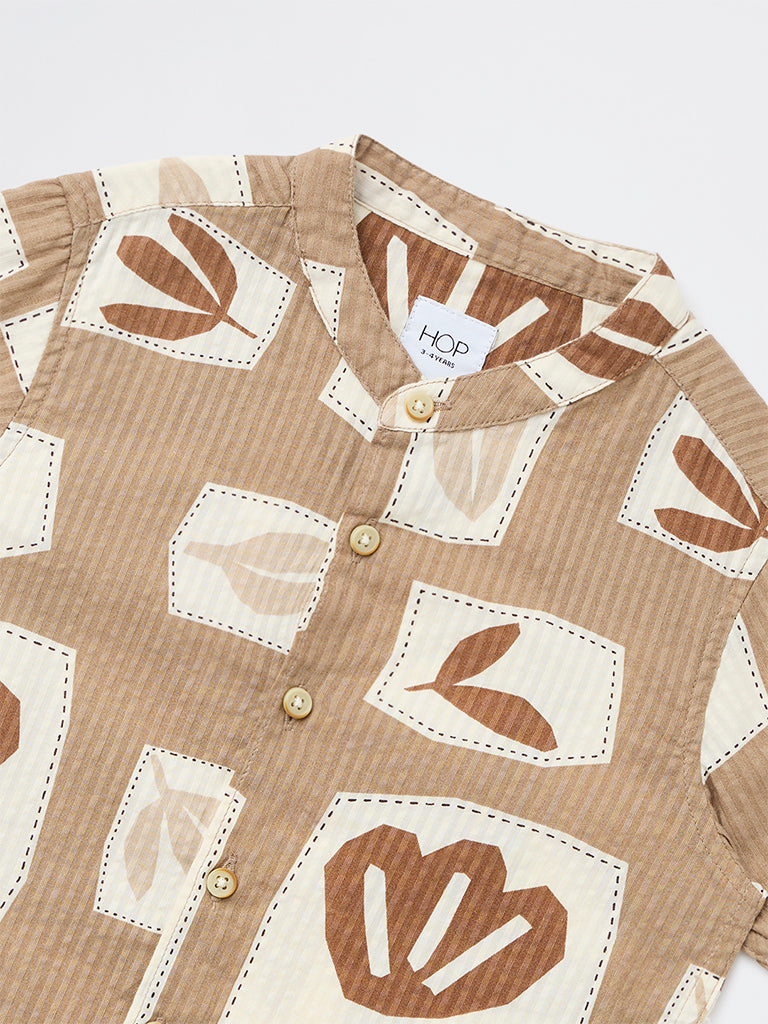 HOP Kids Boys Taupe Printed Cotton Shirt