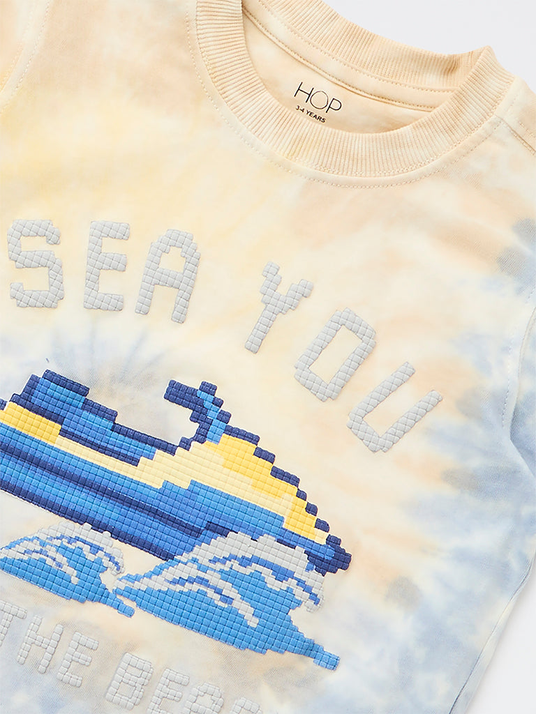 HOP Kids Boys Yellow Tie-Dye Pattern Cotton T-Shirt