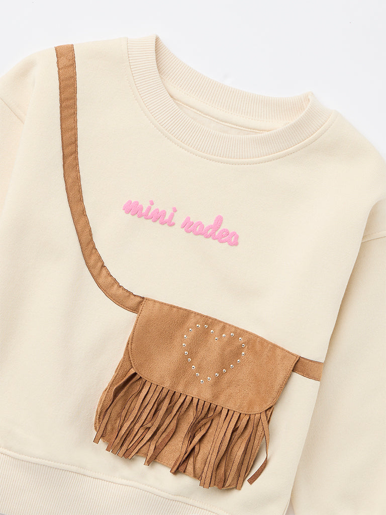 HOP Kids Girls Beige Embroidered Cotton-Blend Sweatshirt