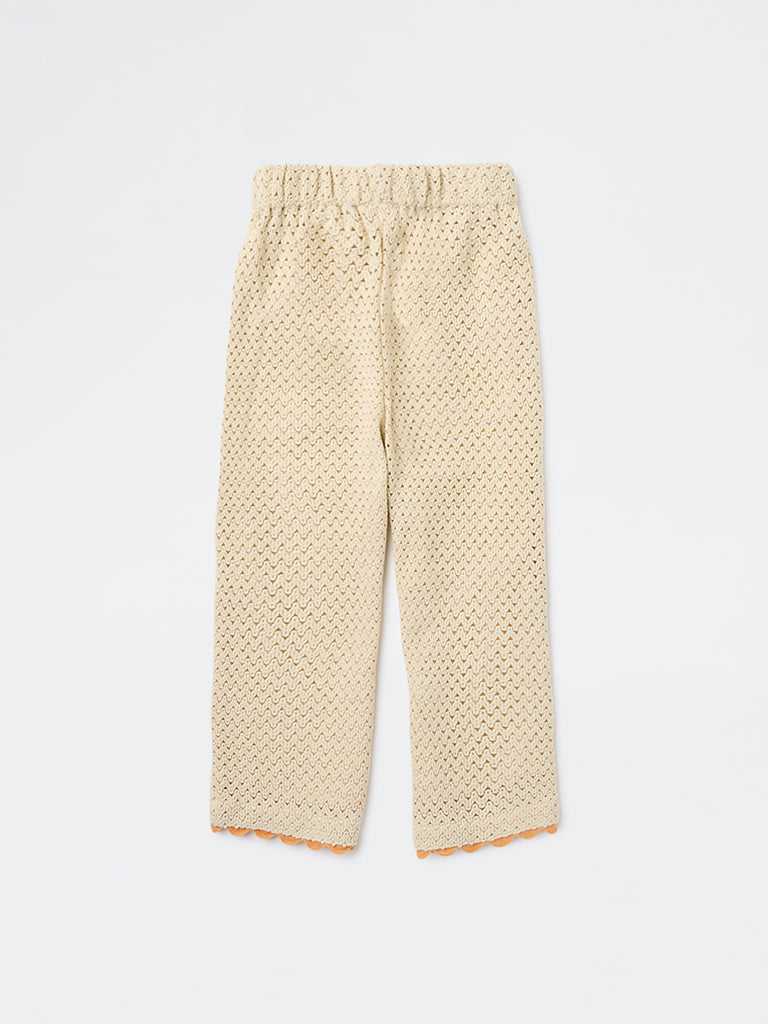 HOP Kids Girls Cream Crochet-Knit Mid-Rise Cotton Pants