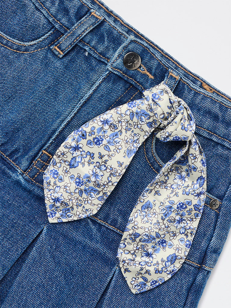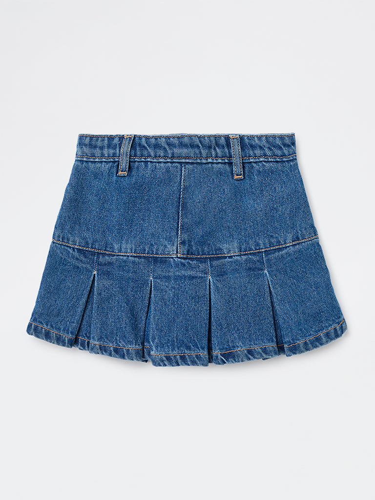 HOP Kids Girls Dark Blue Solid Mid-Rise Denim Skorts