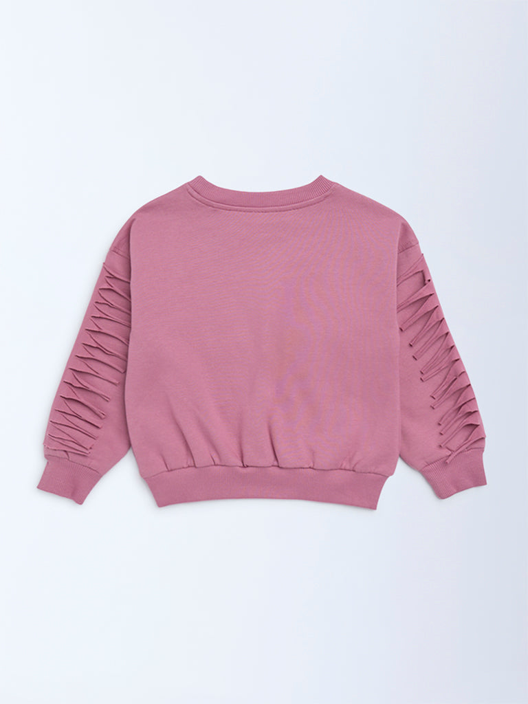 Cosy days feel extra special with this dusty rose sweatshirt from HOP Kids. Finished with delicate embroidery, it brings a gentle charm to everyday dressing. Crafted from a soft cotton-blend fabric, it offers warmth and all-day comfort, while the round neckline, full sleeves, and fringe detailing add a playful finish kids will love.
