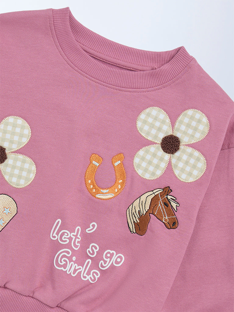 HOP Kids Girls Dusty Rose Embroidered Cotton-Blend Sweatshirt