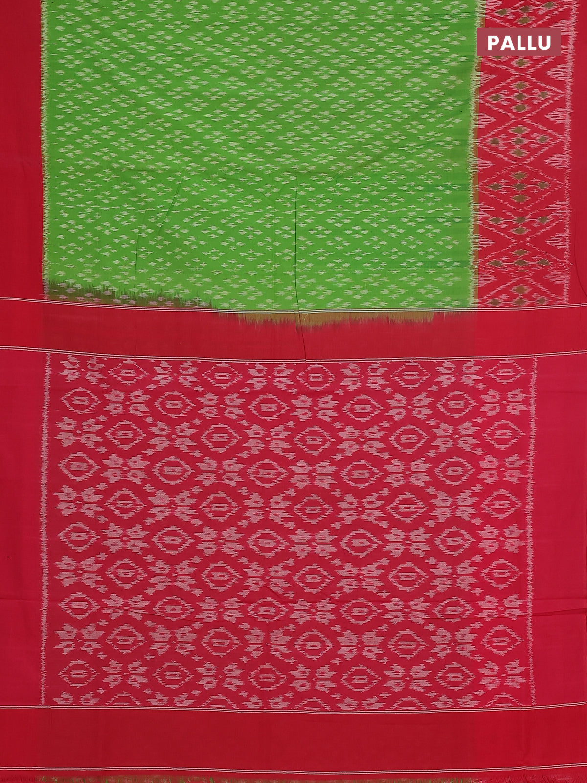 Ikat cotton saree light green and pink with allover ikat butta weaves and long ikat style border