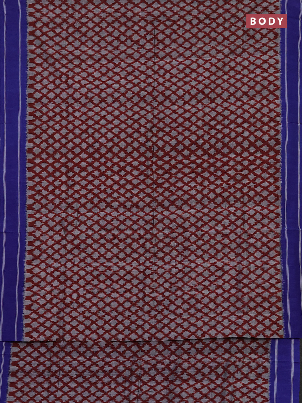 Ikat cotton saree maroon grey and blue with allover ikat butta weaves and rettapet border