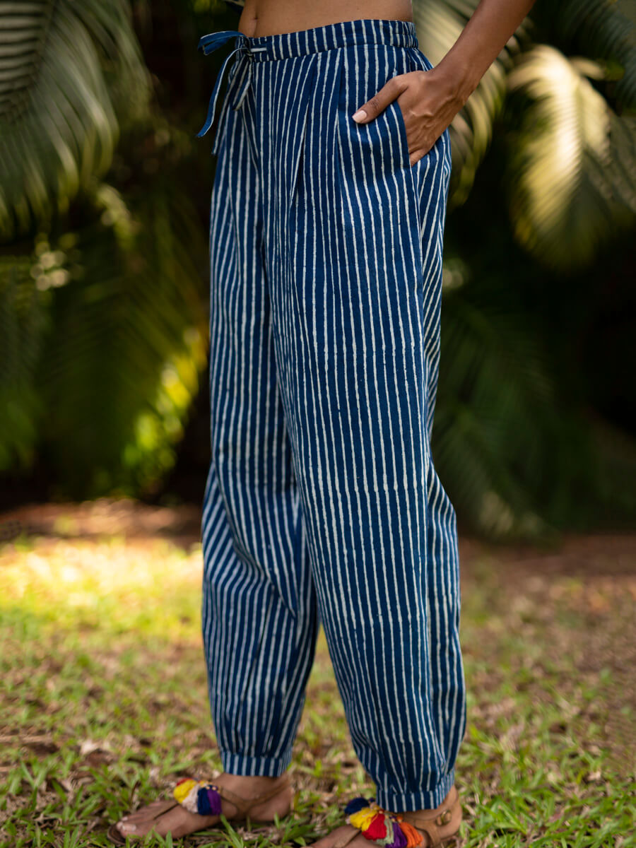 - Comfortable lantern pants daabu hand printed in fine cotton