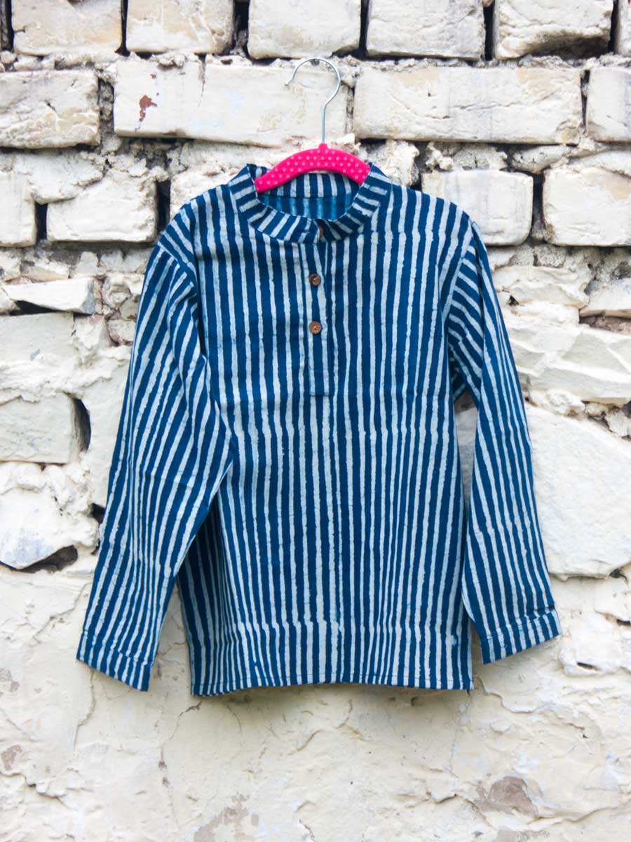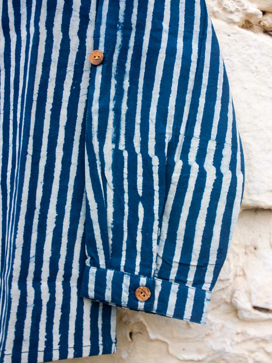 Indigo Stripes Organic Cotton Shirt Kurta with Roll Up Sleeves