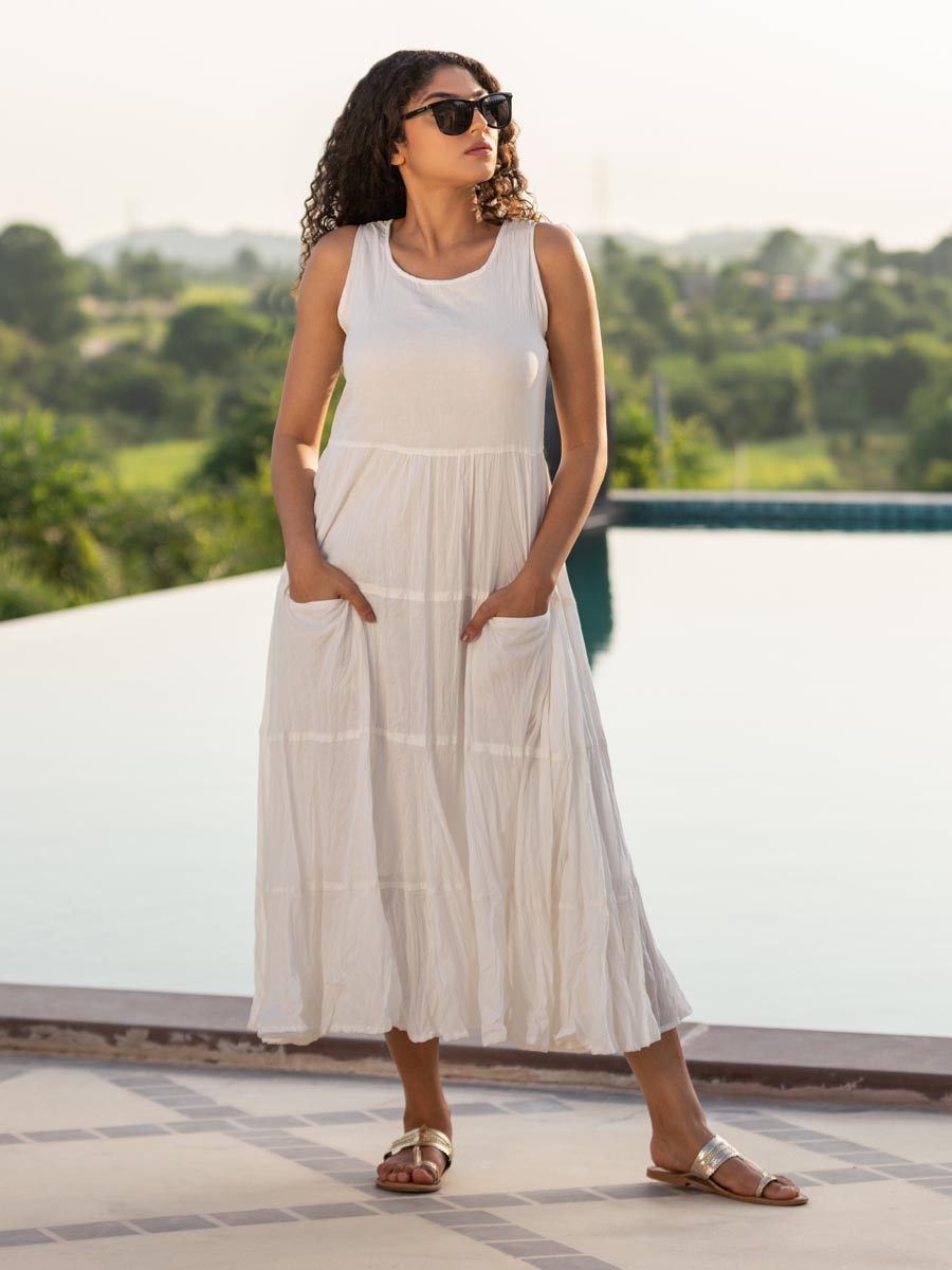 Ivory Love Sleeveless Cotton Dress