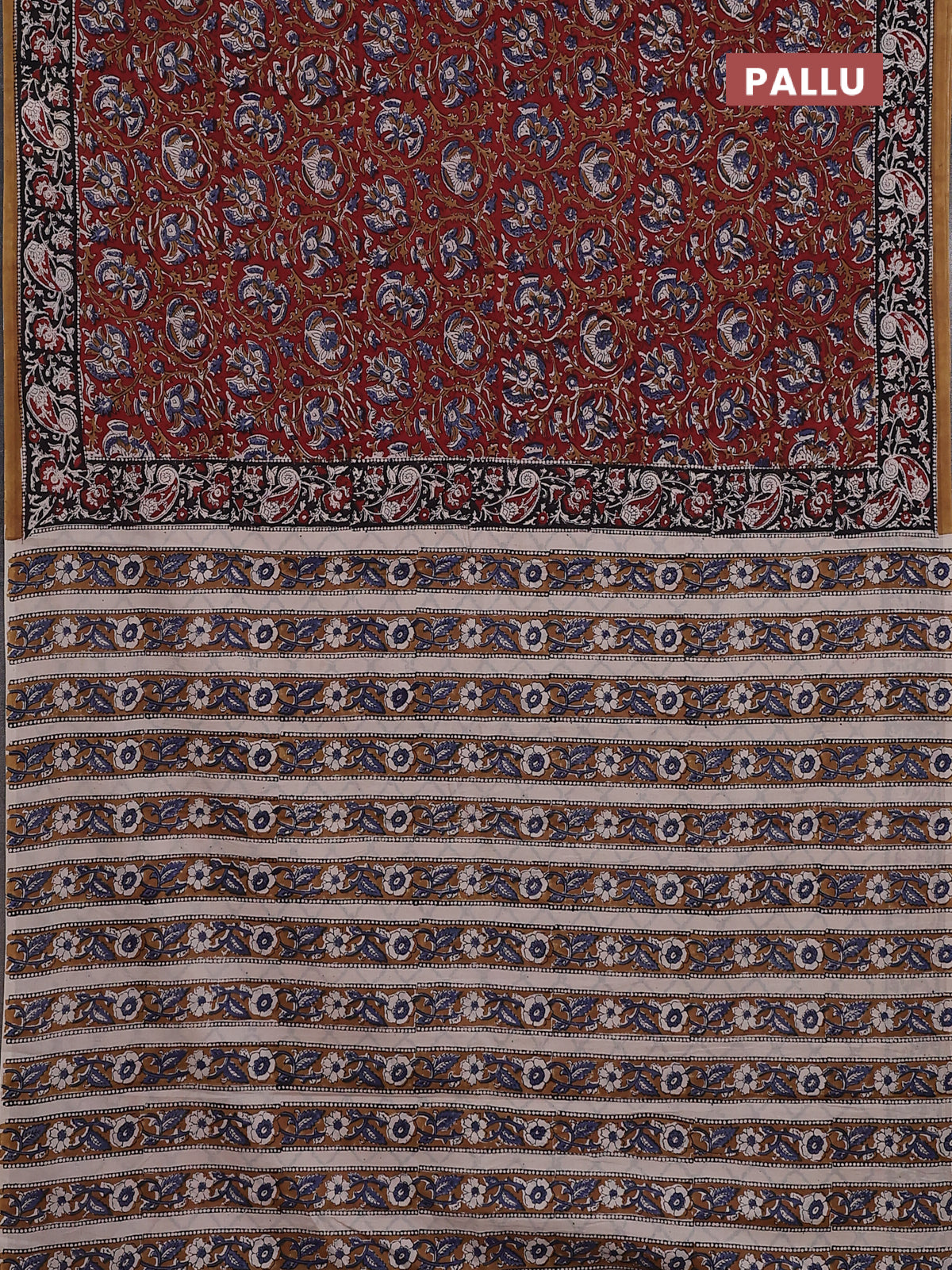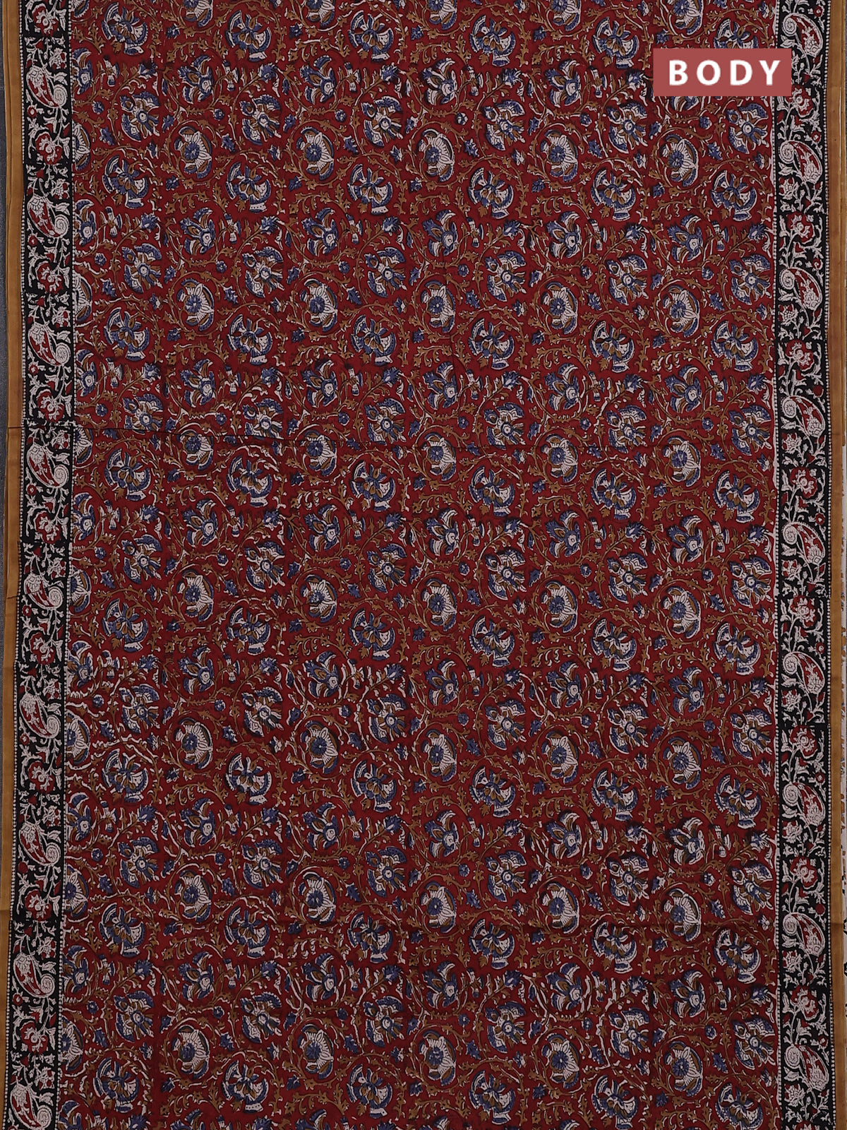Jaipur cotton saree marron and black with allover kalamkari prints and printed border